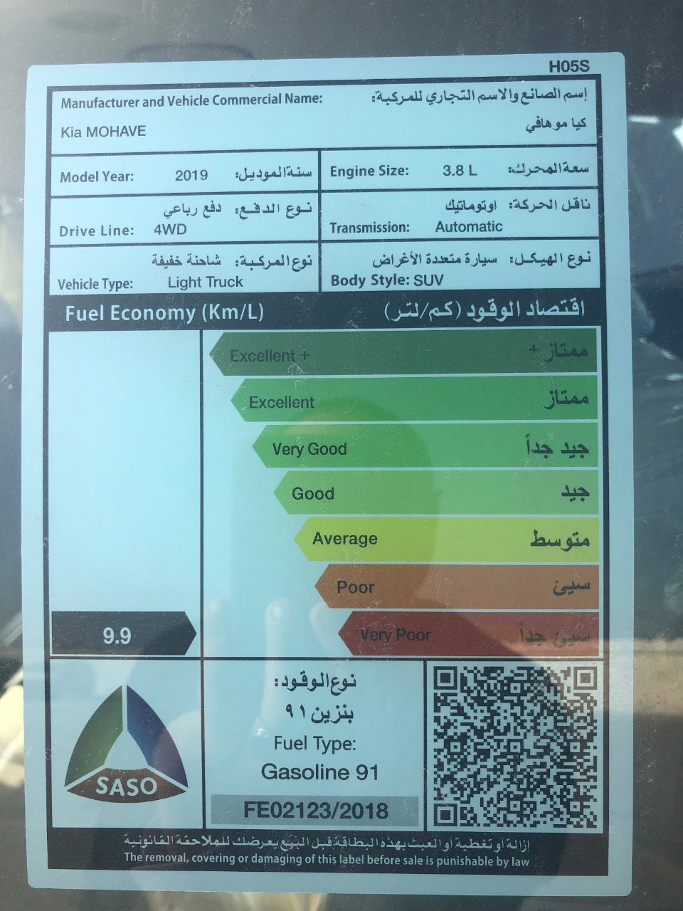 في حين تأتي كيا موهافي كـSUV متوسطة بدفع رباعي ومعدل استهلاك 9.9 كم/لتر.