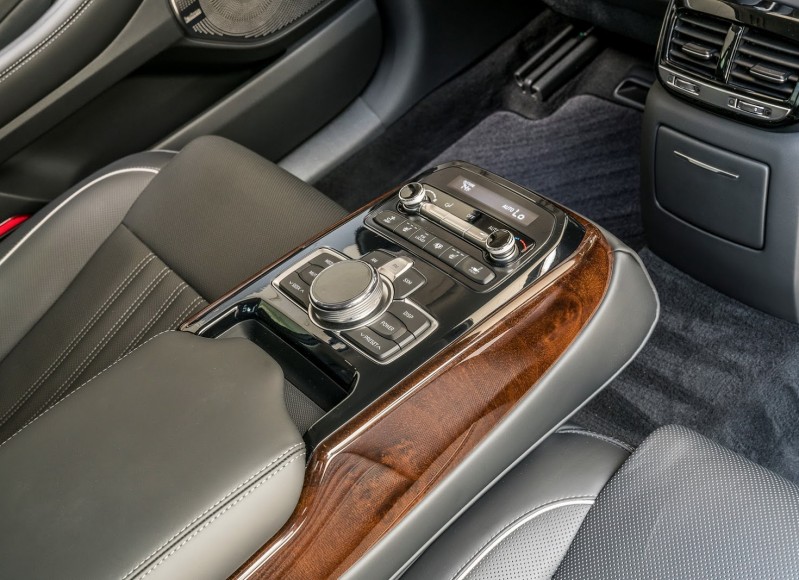 ننتقل للتصميم الداخلي، والتي قامت جينيسيس باستخدام أرقى المواد فيه بملسات خشبية وجلد غال الثمن وتخييط دقيق وإضاءة مريحة شاملة..كما توجد شاشة رقمية بطول 12.3 إنش لنظام المعلومات الترفيهية، والتي يمكن استخدامها أيضا للتحكم في بعض خصائص السيارة.