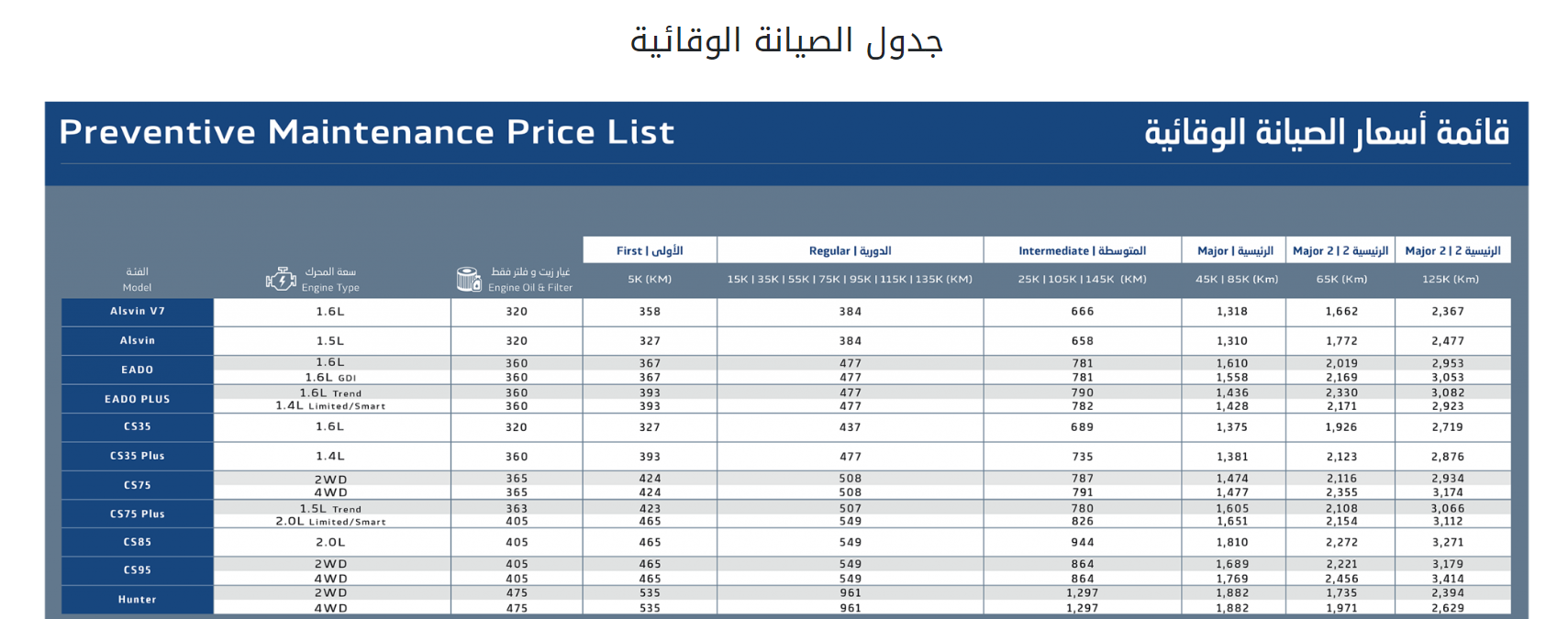 ويمكنكم الإطلاع على قائمة أسعار جدول الصيانة لسيارات شانجان عبر موقعها الرسمي من هنا