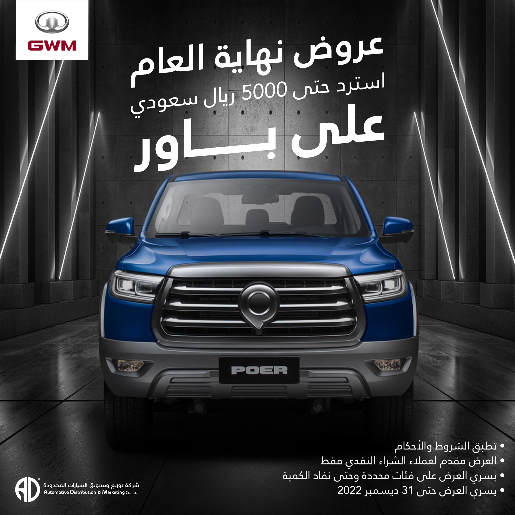 المربع نت : عروض السيارات – جريت وول باور هي سيارة بيك اب مُجهزة للاستخدام العائلي واليومي بفضل تكنولوجيا الرفاهية والسلامة ويمكنك أن تتحصل عليها الآن وقبل نهاية العام من خلال عرض استرداد نقدي مقدم من الوكيل شركة توزيع وتسويق السيارات المحدودة.. إليكم التفاصيل.