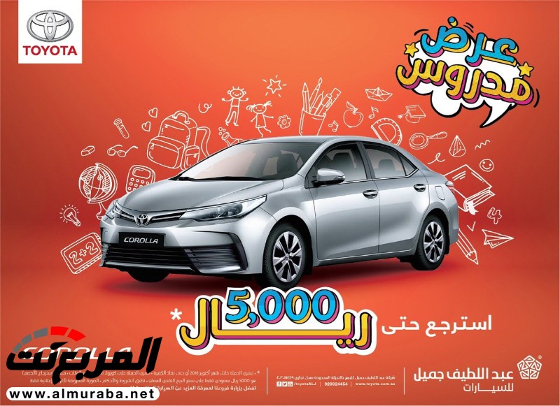 المربع نت – قدم عبداللطيف جميل عرضاً على تويوتا كورولا 2018، باسترجاع نقدي حتى 5000 ريال.