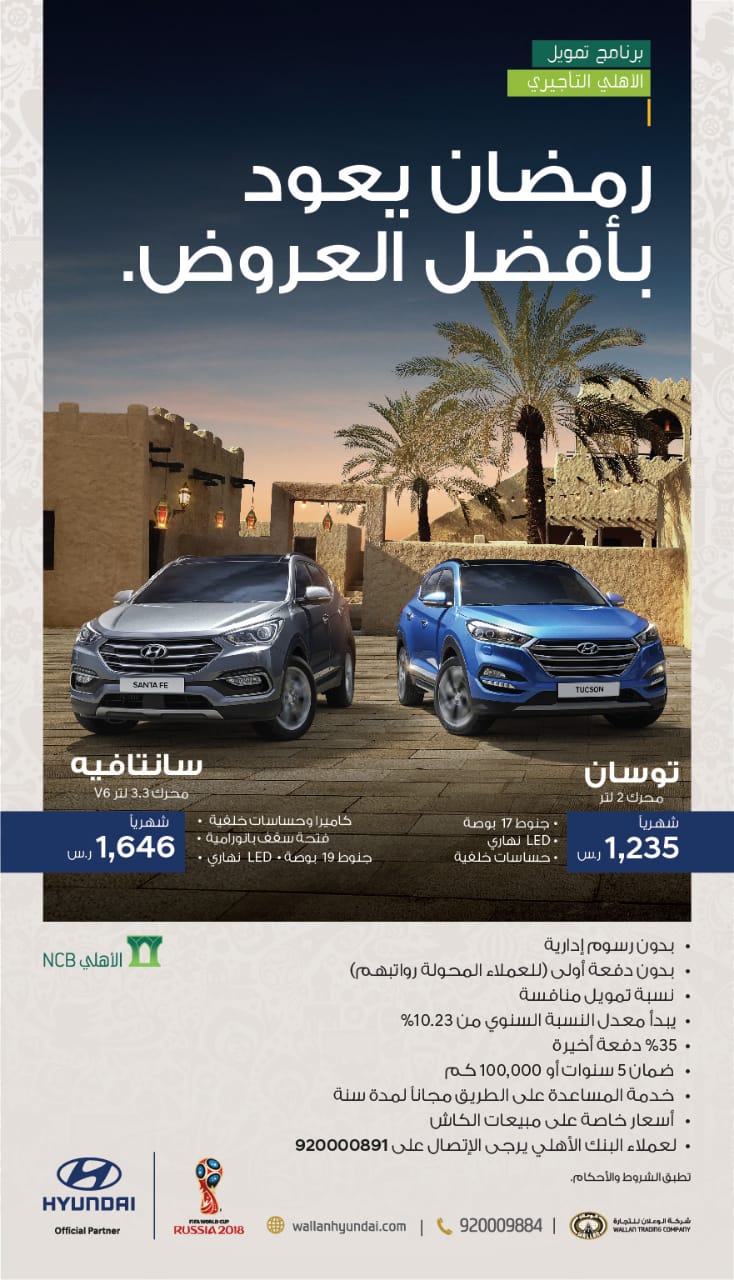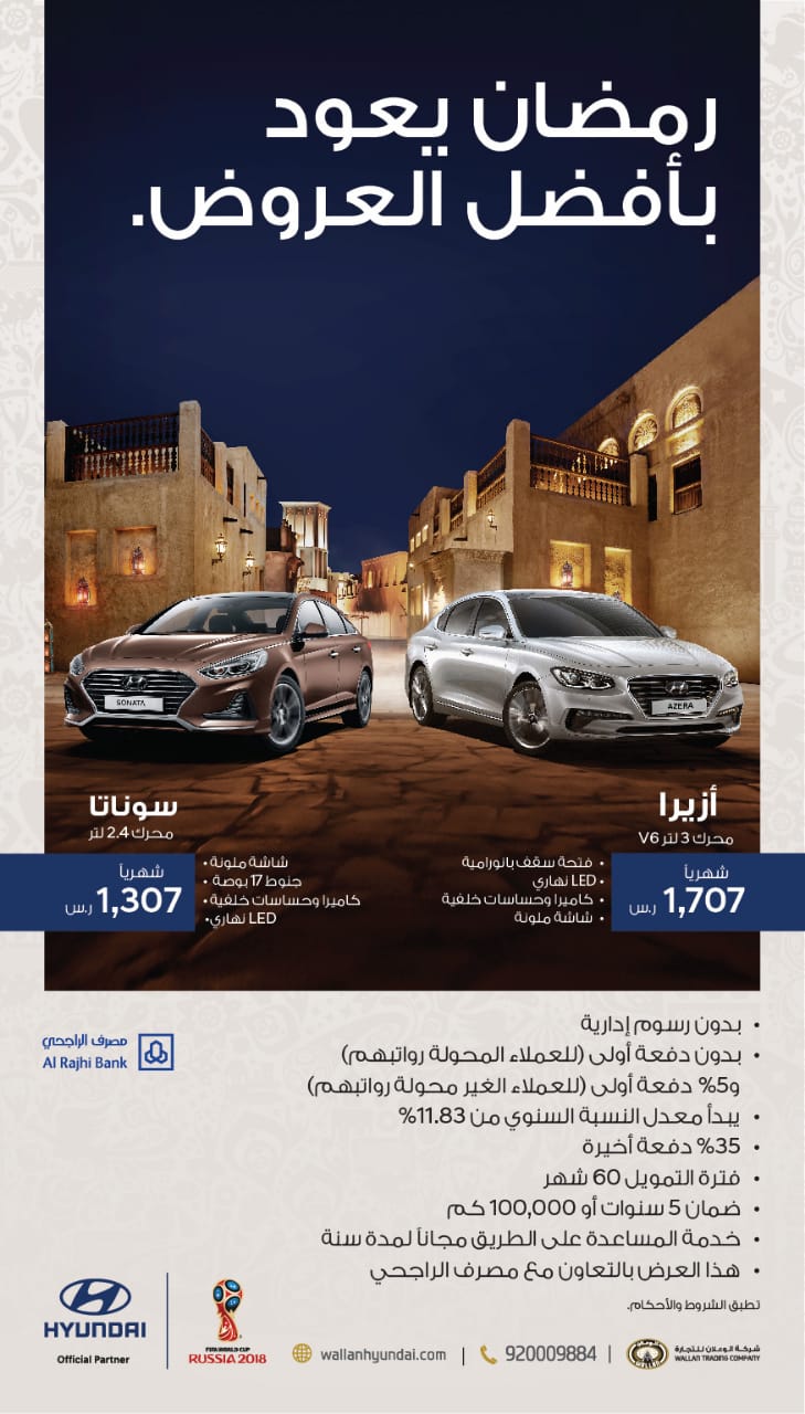 المربع نت – مع انطلاق شهر رمضان المبارك إنطلقت عروض هيونداي وجينيسس الوعلان الرمضانية لهذا العام وعلى العديد من السيارات على الكاش والأقساط ايضاً.