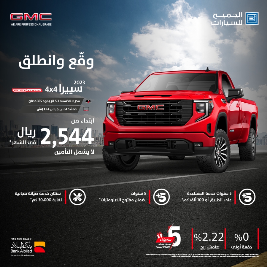 قسط شهري يبدأ من 2,544 ريال على سييرا ELEVATION موديل 2023 – لا يشمل التأمين.
