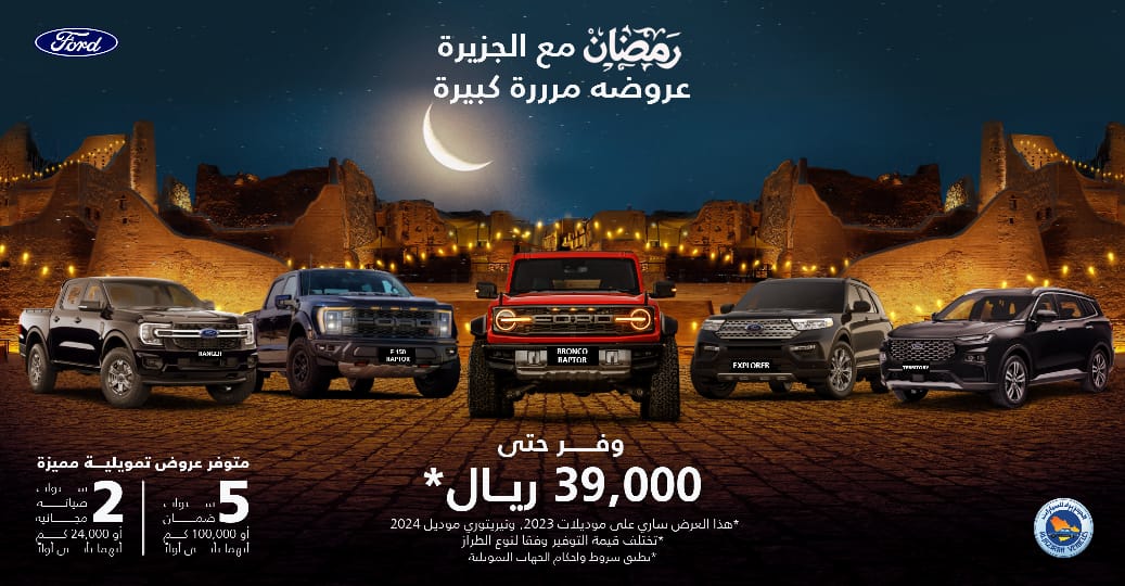 المربع نت : عروض السيارات – بمناسبة حلول شهر رمضان الكريم، تقدم توكيلات الجزيرة عروض سيارات فورد و عروض سيارات لينكولن استرداد نقدي، فإليكم التفاصيل.