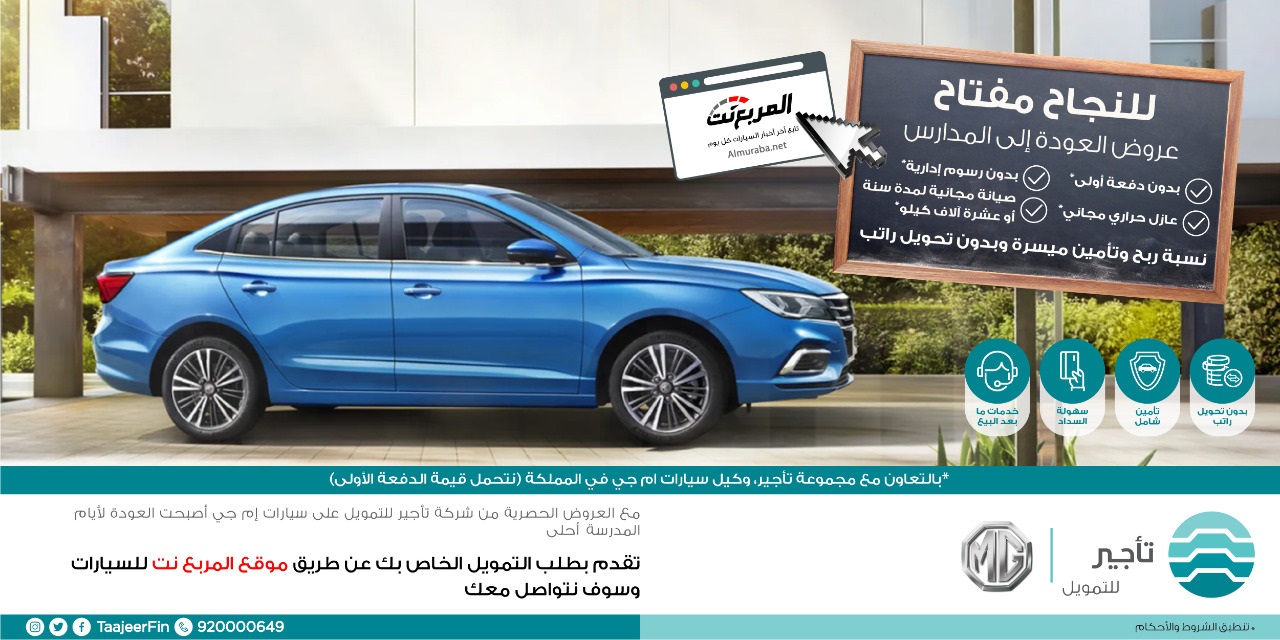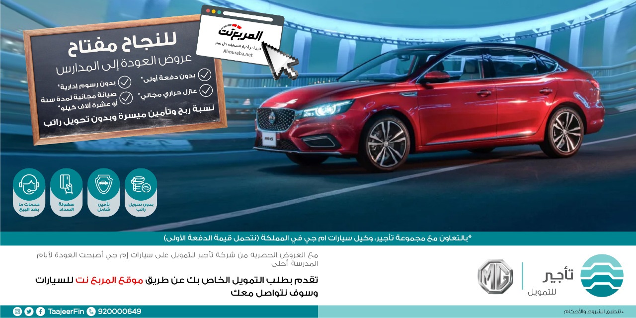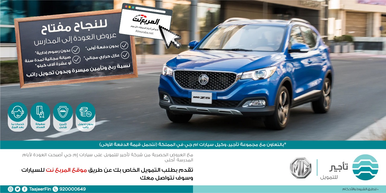 المربع نت – تمتع بأفضل عروض السيارات من شركة تأجير للتمويل، بالتعاون مع مجموعة تأجير وكيل سيارات إم جي في المملكة (نتحمل قيمة الدفعة الأولى).