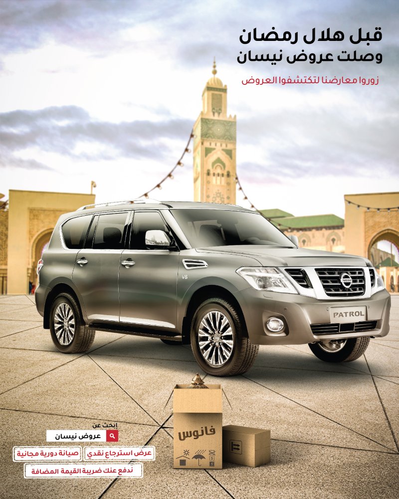 العرض الأول على باترول 2017، “بدون دفعة أولى – صيانة دورية مجانية – ألف لتر مجاني”.