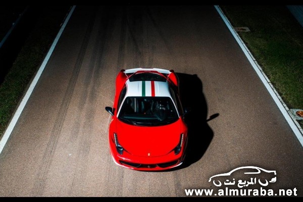 تتميز سيارة فيراري بطلاء احمر مع سقف ابيض بداخله علم ايطاليا بشكل طولي بالاضافة الي الشعار الخاص لسيارة ايطاليا 458 و اعد ذلك التصميم الحصري من قبل القسم التجاري في شركة سياراتت فيرراي كجزء من برنامج الخياط يجعله شخصيا ( Tailor Made personalization ) بالتعاون مع مركز ستايل مارانيلو .