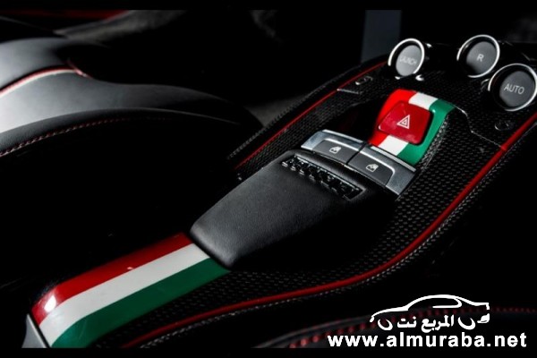 داخلية سيارة فيراري 458 Italia يعزز من استخدام العلم الايطالي علي المقاعد ووحدة التحكم المركزية و لوحة القيادة و اجهزة القياس و تقول شركة سيارات فيراري ان سيارة سيارة فيراري 458 Italia المعدلة لازالت قياسية من ناحية الاداء و لكنها تعد فريدة من نوعها من خلال تكريم اكثر سيارة انتاجا في تاريخ سكوديريا .