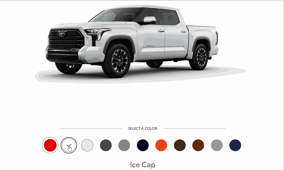 وجاءت ألوان فئات تويوتا تندرا 2024 البيك أب الجديدة بمجموعة مختلفة من الألوان، وذلك لتناسب أذواق العملاء والمستهلكين حسب اختيار كل شخص، وتأتي بالألوان الآتية حسب تسمية العلامة: