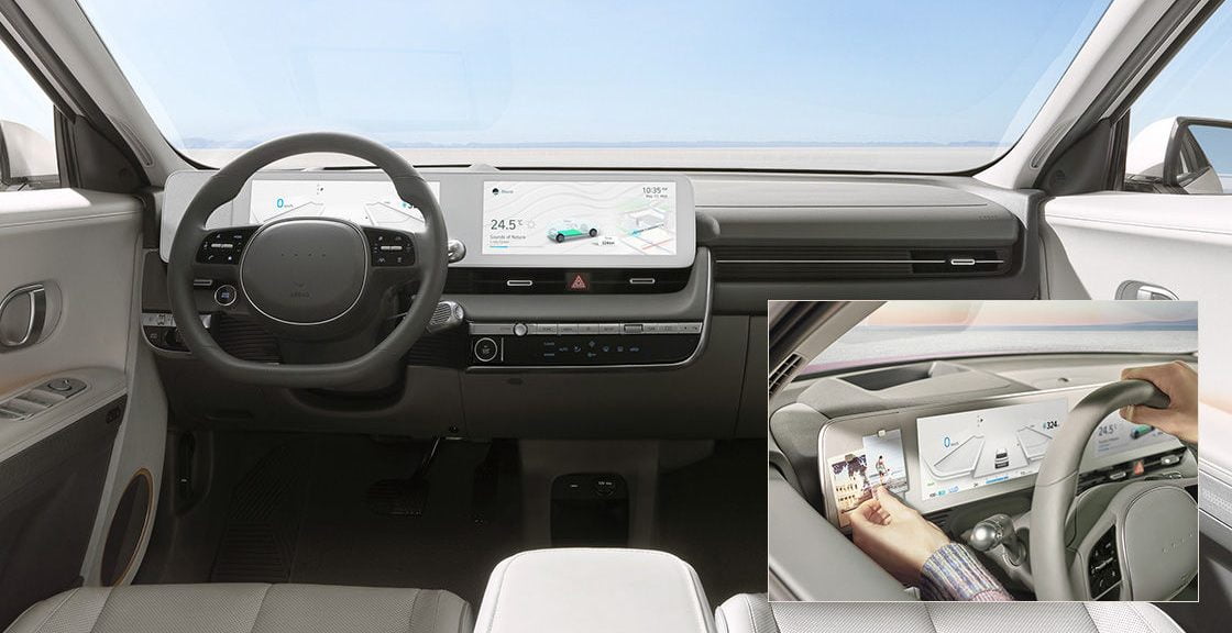 وأما عن تقنيات هيونداي ايونيك 5 2024 الجديدة، فإن السيارة الكهربائية حصلت على شاشة المعلومات والترفيه لمسية مقاس 12.25 بوصة، مع وجود شاشة عدادات مقاس 12.25 بوصة.