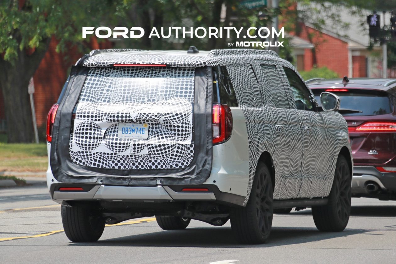 وتكشف الصور التجسسية أيضاً أن فورد اكسبيديشن 2025 سوف تتوافر بعجلات رياضية ضخمة بقياس يصل إلى 24 إنش بتصميم رياضي، بالإضافة إلى تصميم جديد للمصابيح الخلفية والتي تظهر بتصميم أنحف من الجيل السابق مع دمجها بغطاء صندوق الأمتعة الخلفي.
