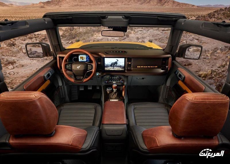 بالدخول إلى مقصورة فورد برونكو 2021 من الداخل، تجد تجد أنها لا تقل في لمستها القوية عن تصميمها الخارجي، بحصولها على مواد عالية الجودة ومتينة حتى تتناسب مع طبيعة البيئة الصحراوية والطرق الوعرة.