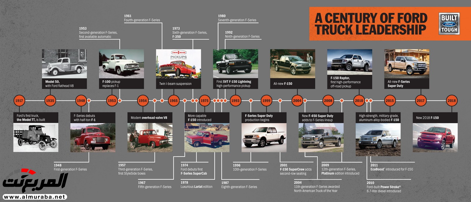 وسرعان ما أحتلت فورد مكانتها بين صناع السيارات العالمية، لتفاجئنا دائمًا بإبداعاتها وتميزها في عالم شاحنات بيك أب. ومن ضمن أهم ما قدمت هو هيكل الألومنيوم عالي الأداء المناسب عسكريًا لموديل F-150، جنبًا إلى جنب مع محرك إيكوبوست بإسطواناته الست لتحسين إستهلاك الوقود.