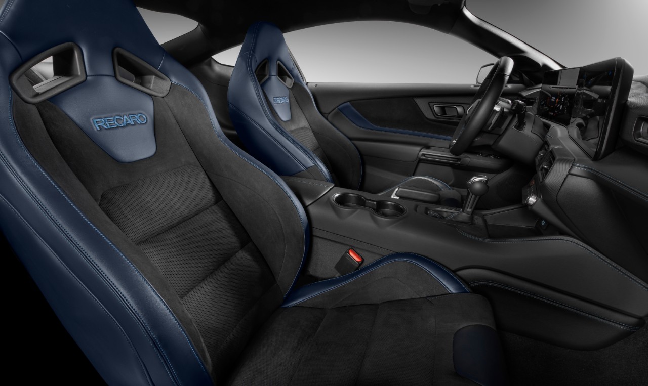 حصلت فورد موستانج دارك هورس موديل 2024 على العديد من اللمسات الرياضية المتعددة بداخلية السيارة، حيث تبدأ مع مقبض ناقل حركة جديد كلياً من التيتانيوم الأزرق يظهر في النسخة المقدمة بناقل حركة يدوي، وسوف تأتي النسخة المزودة بناقل حركة أوتوماتيكي بمقبض ناقل حركة تقليدي.
