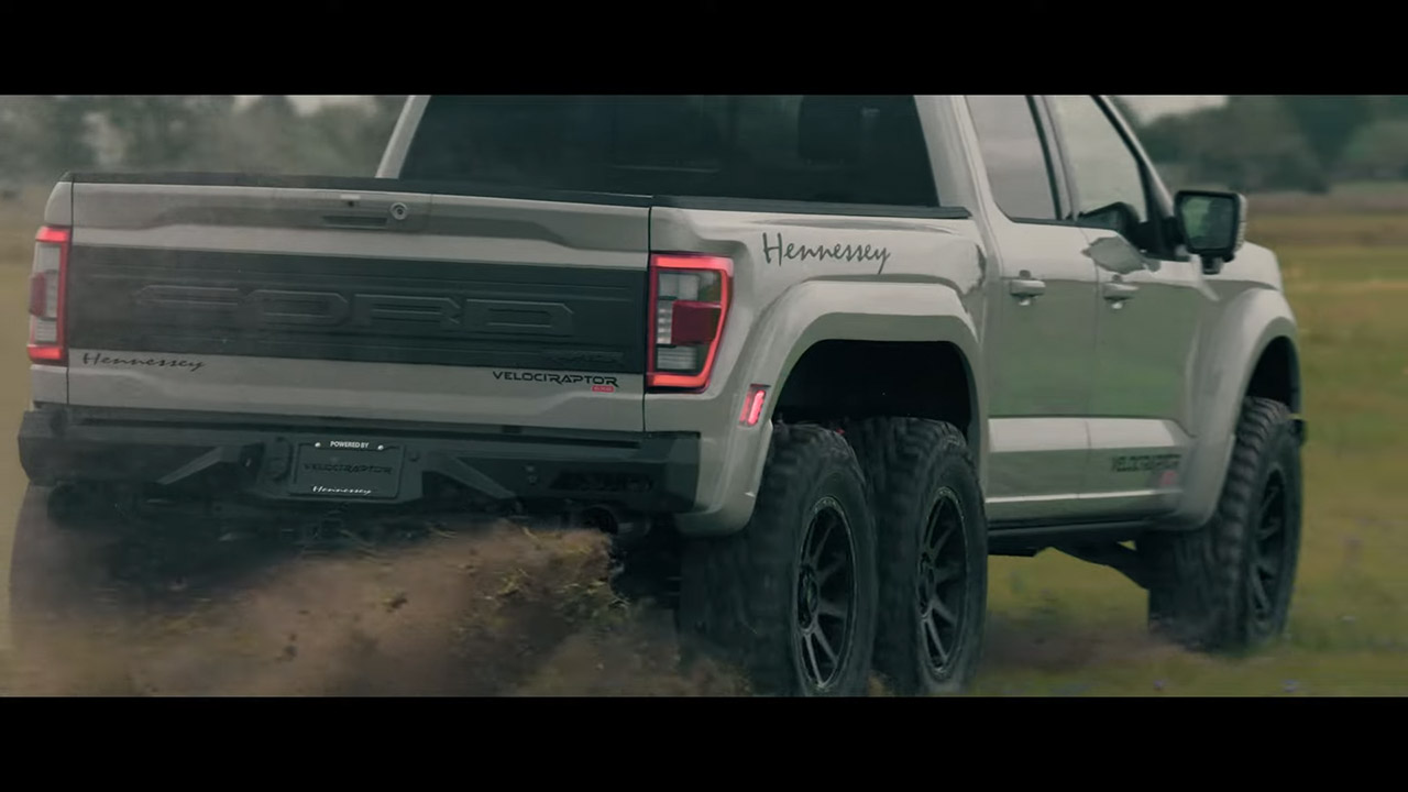 هذه النسخة تحديداً مبنية على فورد رابتور R الأكثر حصرية والأعلى أداءً، والتي تحولت إلى شاحنة دفع سداسي بفضل تعديلات هينيسي، مع استلامها لصندوق خلفي أطول ومحور إضافي من العجلات يعمل بكافة طاقته.