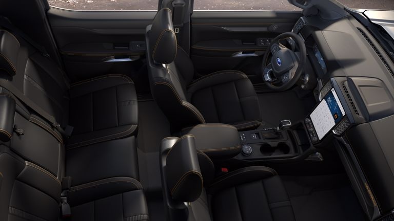 ونرى داخل مقصورة فورد رينجر ٢٠٢٣ خمسة مقاعد أنيقة تأتي بتصميم مريح داعم للجسد كما تحصل على كسوة جلدية عالية الجودة لملمس ناعم وطابع أكثر فخامة بالداخل.