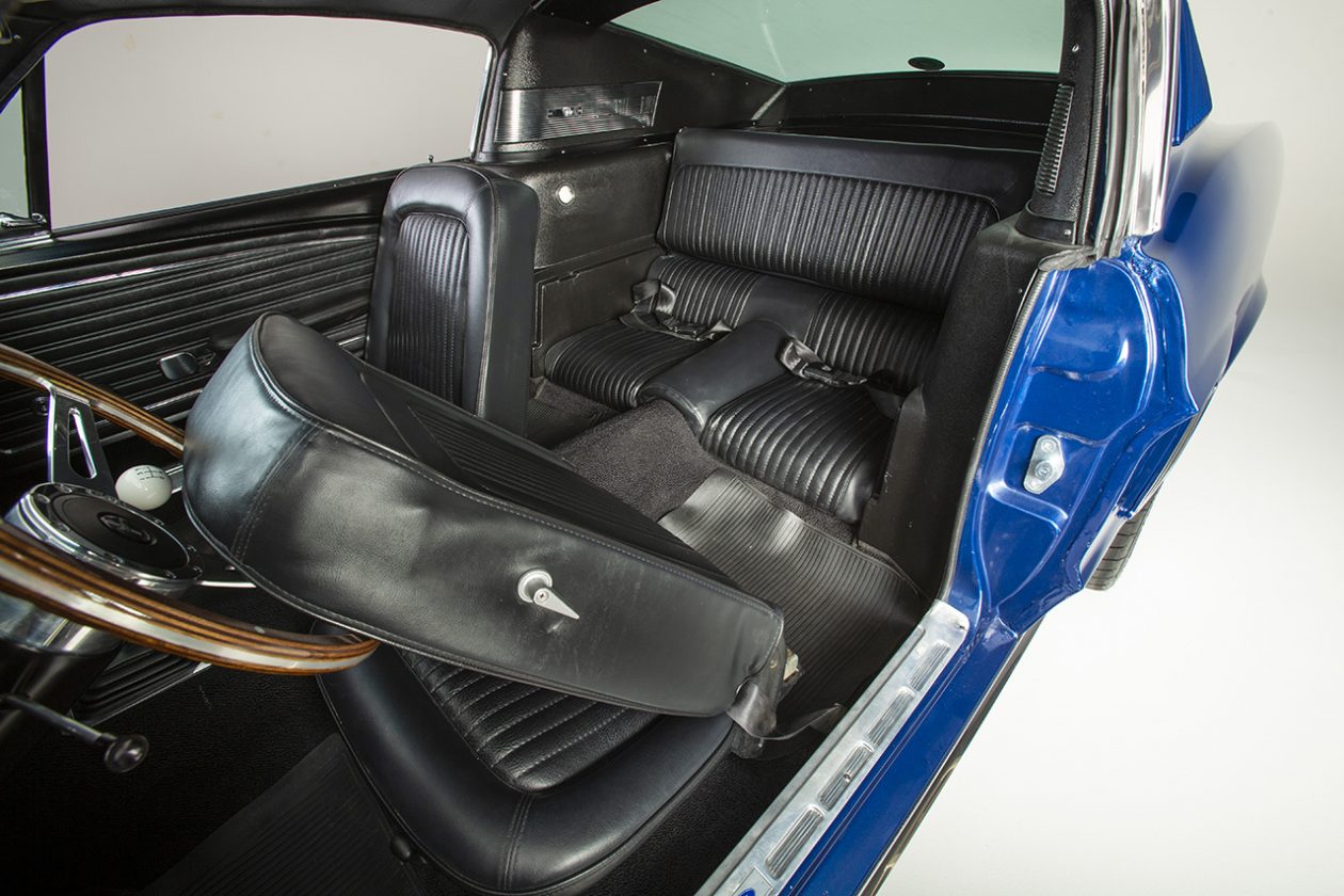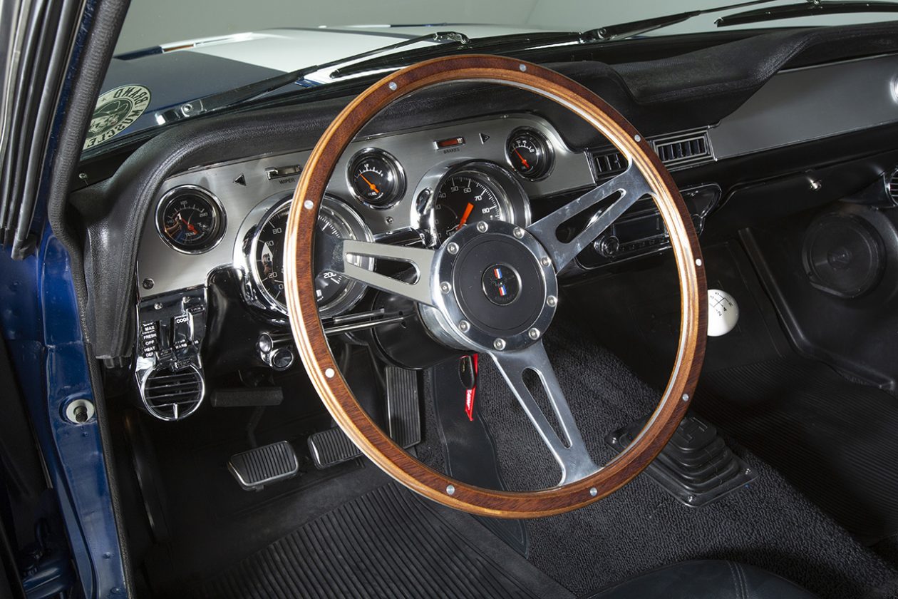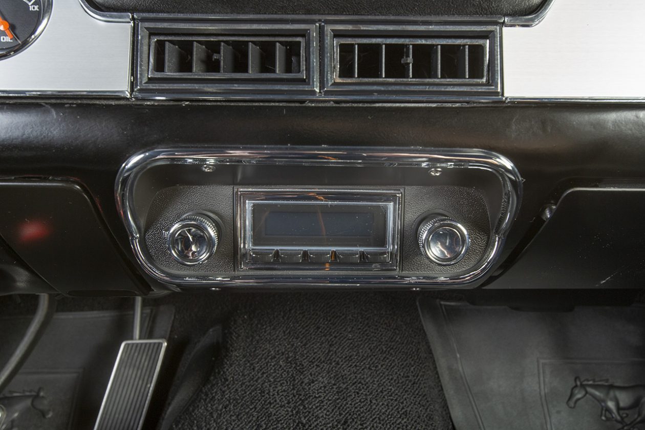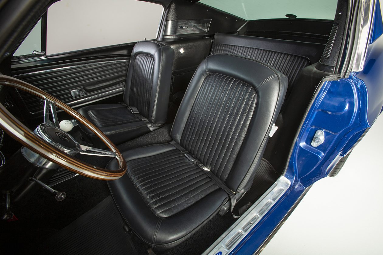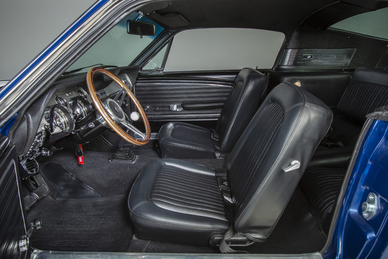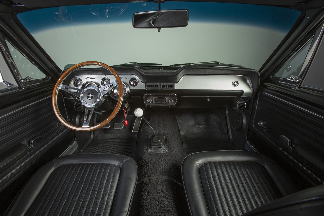 بالانتقال إلى الداخلية سوف نرى أن فورد موستنج الكلاسيكية قد حصلت على مقاعد بتصميم كلاسيكي مع نظام تدفئة وتحكم كهربائي، بالإضافة إلى استخدام جلد عالي الجودة، وخياطة يدوية بدقة عالية، مع نظام صوتي من أربع سماعات Pioneer، مع راديو بتصميم كلاسيكي، ولكن بتقنيات حديثة مثل البلوتوث.