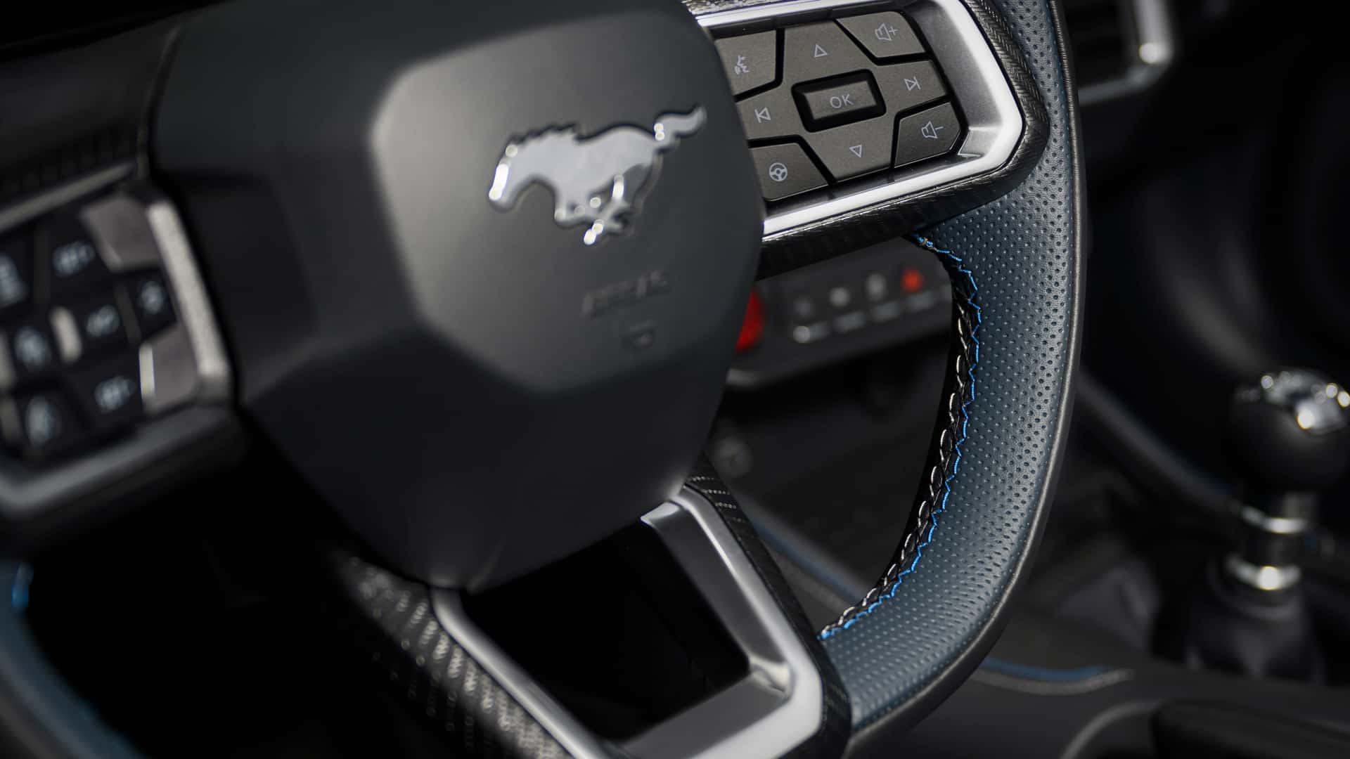 وسيتوفر الإصدار الجديد لموستنج بتصميم الكوبيه والكشف، مع ناقل حركة يدوي 6 سرعات أو أوتوماتيكي اختياري 10 سرعات.. ويتميز الإصدار بالشبك الأمامي المعدل، واللمسات الزرقاء الأنيقة في مختلف أنحاء الخارجية.