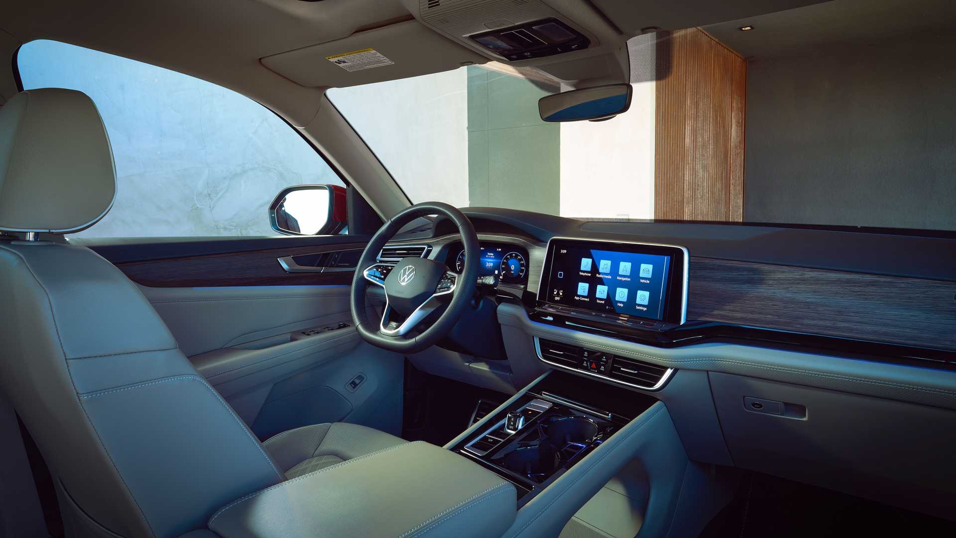 وتتميز فولكس واجن اطلس 2024 الجديدة بمواد أعلى جودة وأناقة في المقصورة، خاصة المواد المستخدمة في لوحة القيادة وألواح الأبواب، مع توافر المقاعد الجلدية بتخييط ماسّي أنيق لفئات الأفخم في المجال.