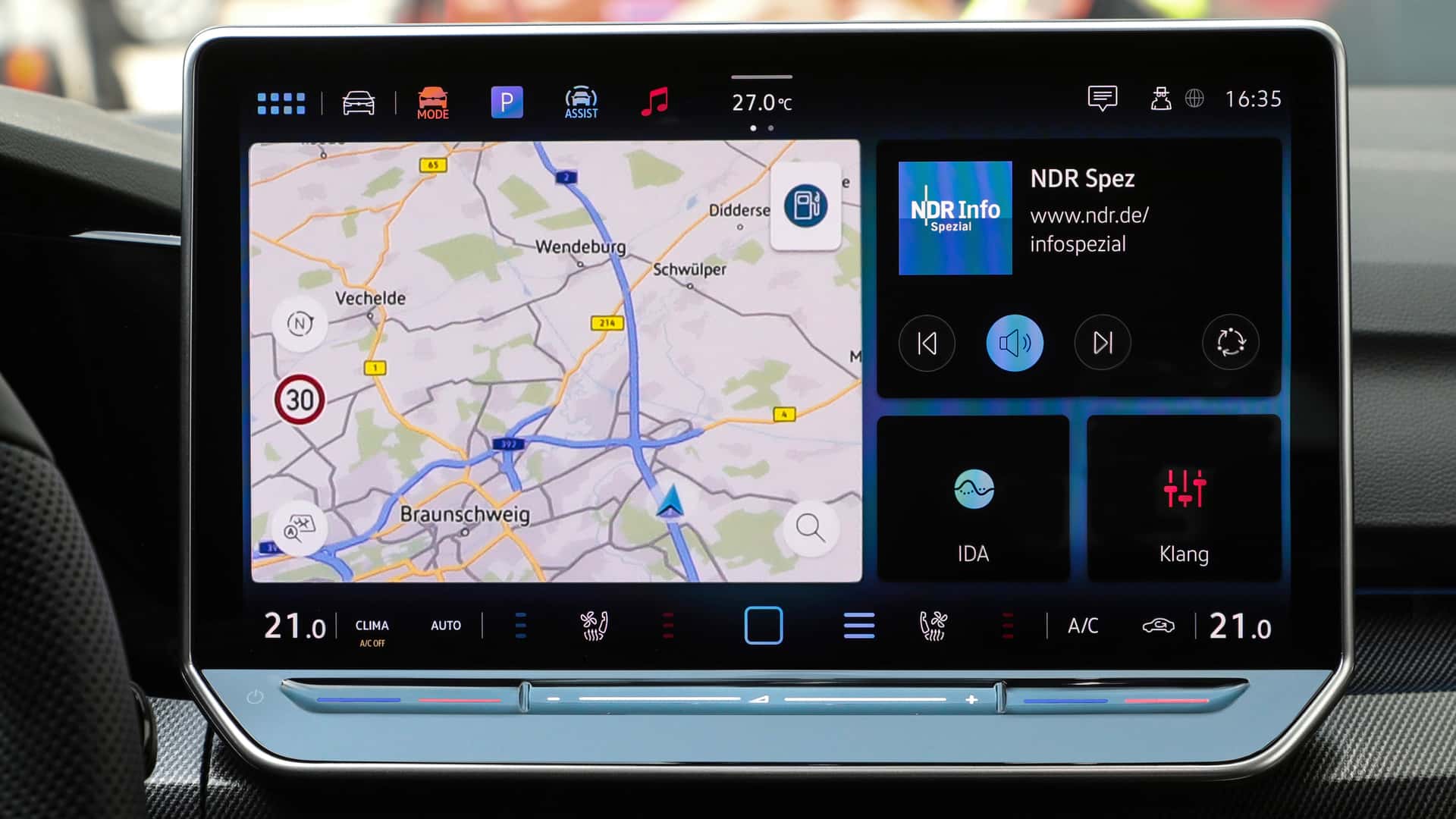 كما استلمت جولف أحدث أنظمة المعلومات الترفيهية لفولكس واجن، بشاشة كبيرة 10.4 إنش بتصميم التابليت، أو 12.9 إنش للفئات الأفخم في المجال. ، مع توافر شاشة عرض اختيارية على الزجاج الأمامي.