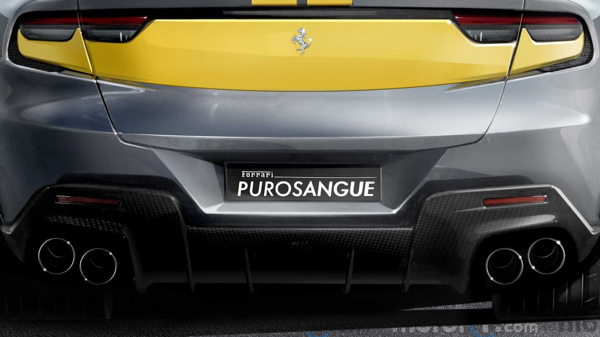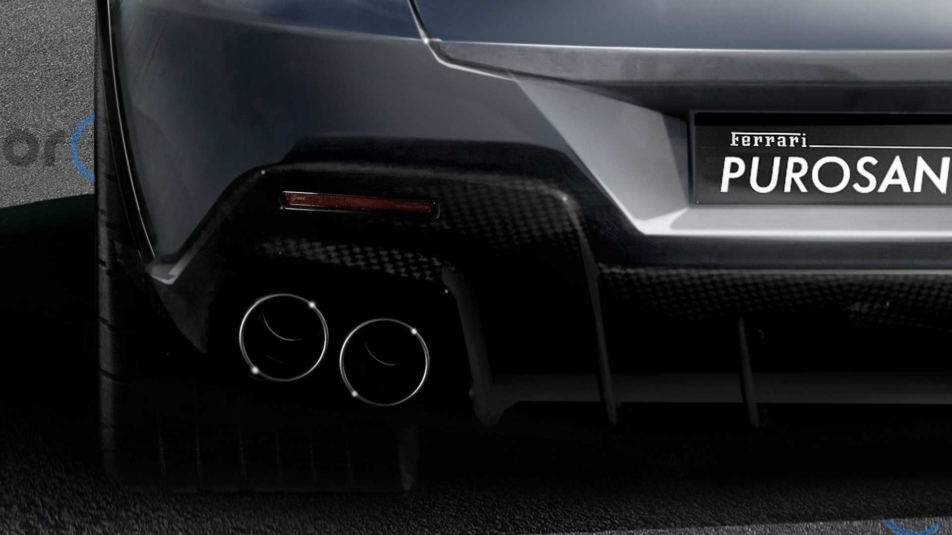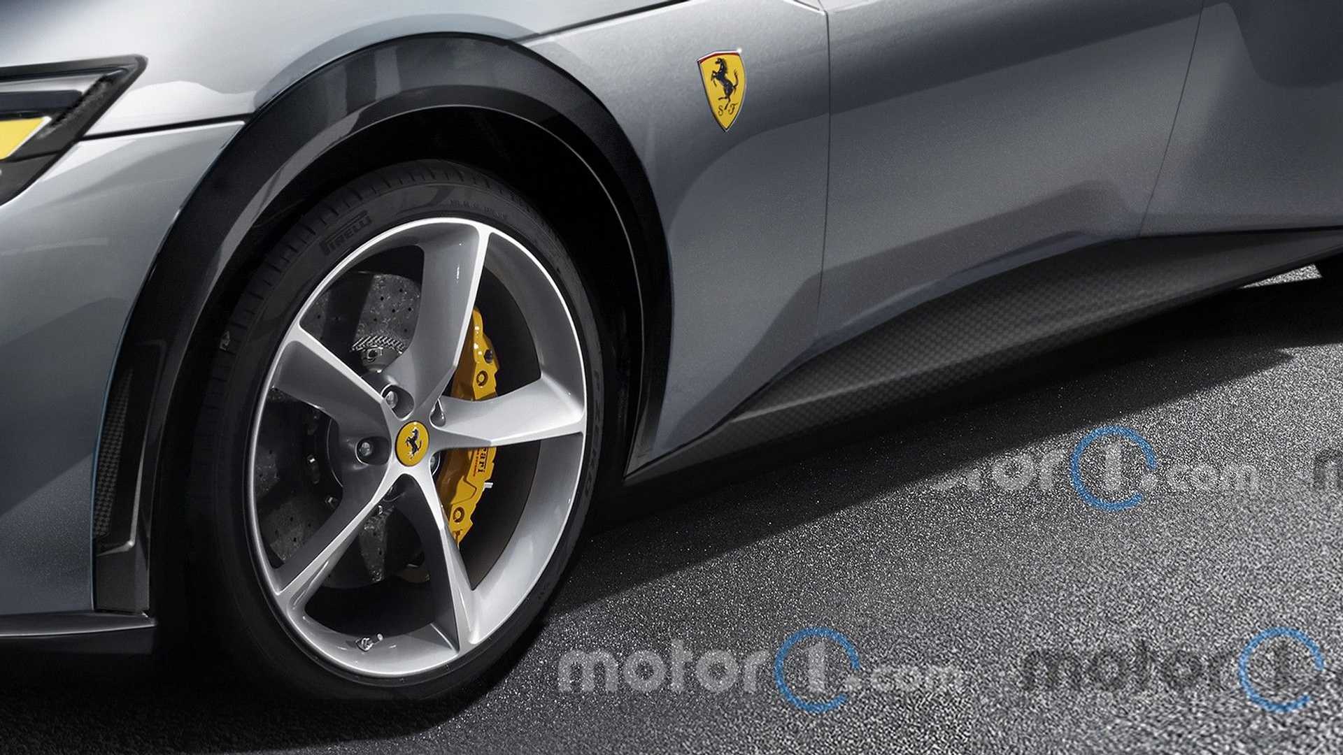 كما تأتي السيارة بعجلات خلفية أكبر من العجلات الأمامية، وإطارات أوسع كذلك بالخلف، ومن المتوقع استنادها إلى نسخة مطولة من منصة موديل فيراري روما من الألمنيوم.