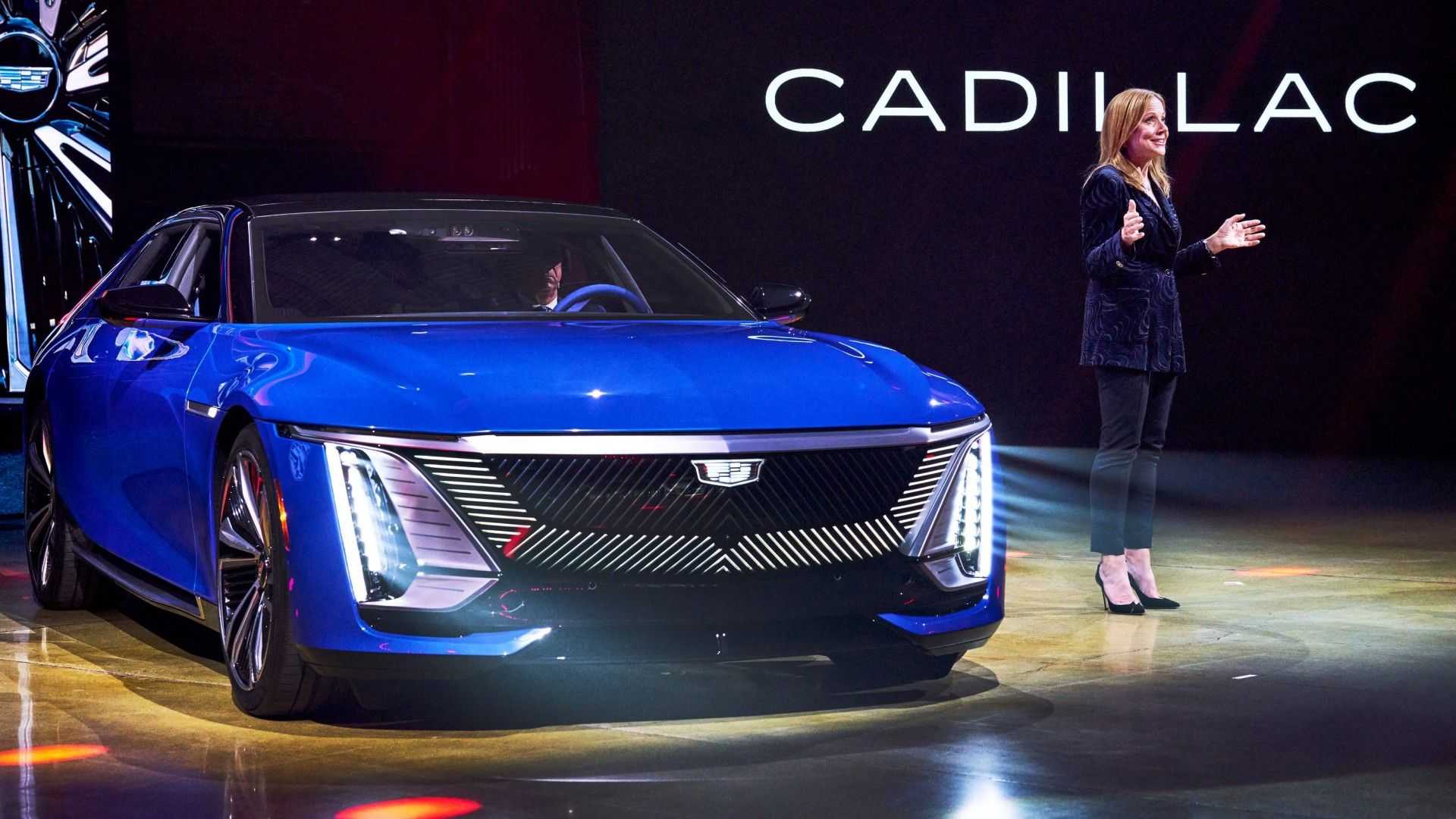 واستخدمت كاديلاك ألياف الكربون بكثافة في الخارجية لتخفيف الوزن قدر الإمكان، مع سقف مائل زجاجي ذكي تم تقسيمه لأربع مناطق للتحكم بدقة في كمية الضوء الداخل للمقصورة، كما تأتي السيارة بجنوط ألمنيوم 23 إنش جذابة، مع شاشة عملاقة 55 إنش في الداخلية، تغطي لوحة القيادة بالكامل وتشمل داخلها لوحة العدادات الرقمية وشاشة المعلومات الترفيهية المركزية وشاشة عرض منفصلة أمام الراكب الأمامي.