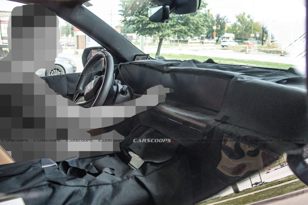 في الصور التجسسية يمكننا رؤية لوحة العدادات الرقمية التي تندمج مع شاشة وسطية كبيرة وشاشة إضافية للراكب الأمامي تحت غطاء زجاجي واحد بقياس إجمالي يبلغ 55 إنش، مع شاشة إضافية بالكونسول الوسطي والتي تأتي أسفل فتحات مكيف الهواء التي تتوسط لوحة القيادة، بالإضافة إلى حصولها على نفس عجلة القيادة الجديدة ثنائية الأضلاع التي تم استخدامها من قبل في النسخة الكهربائية.