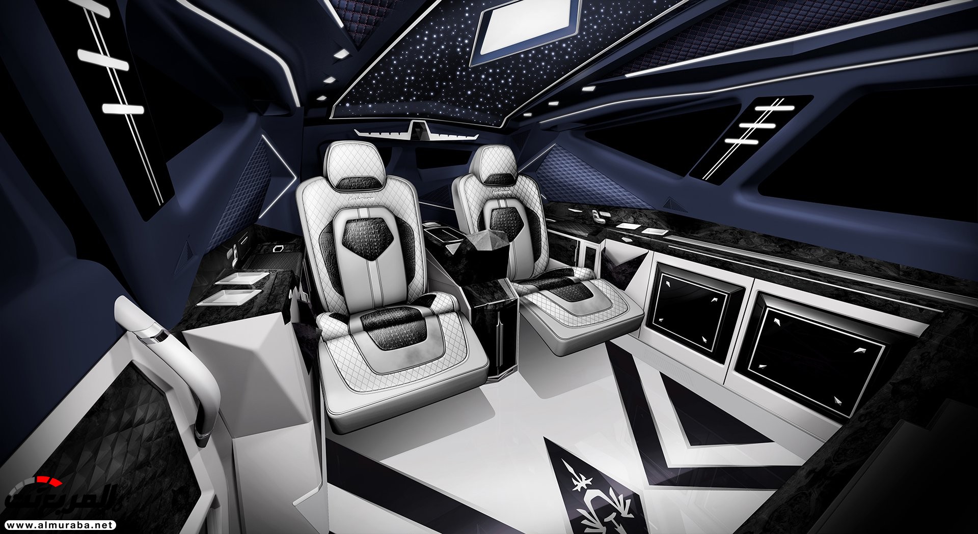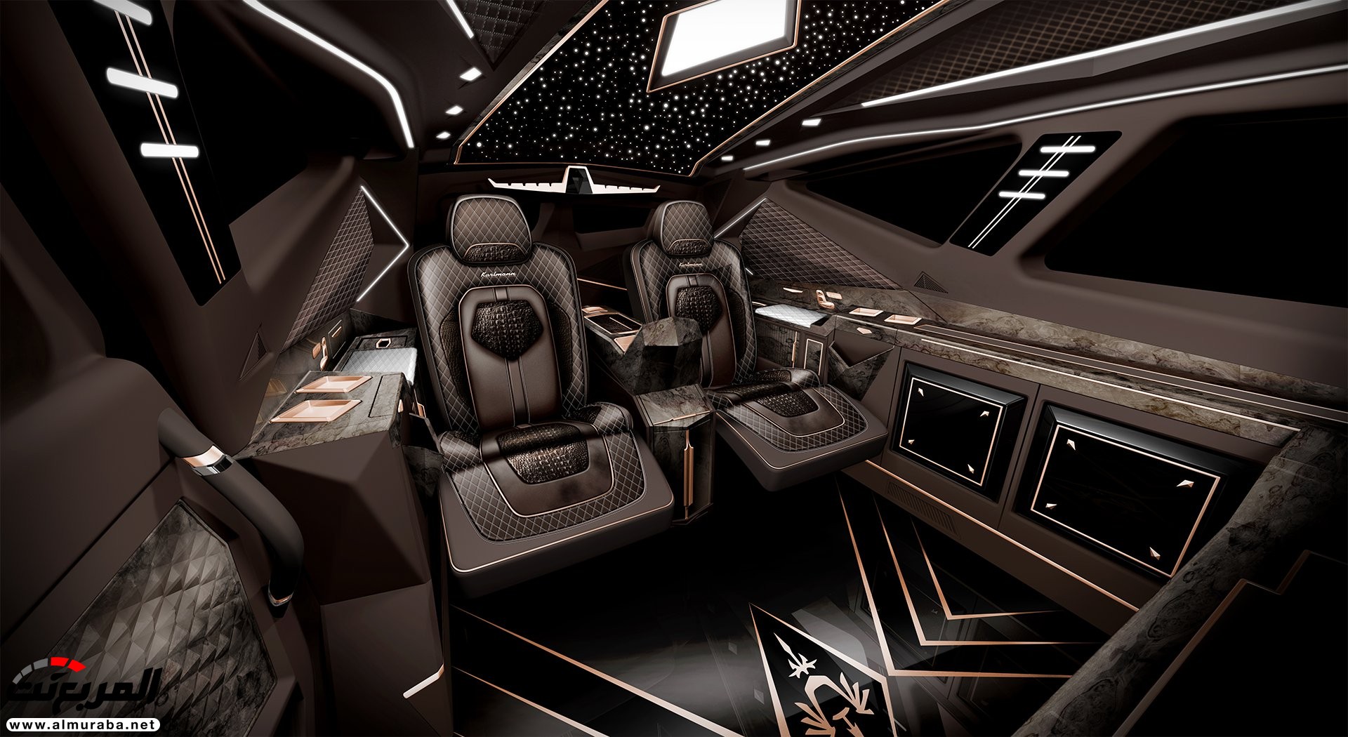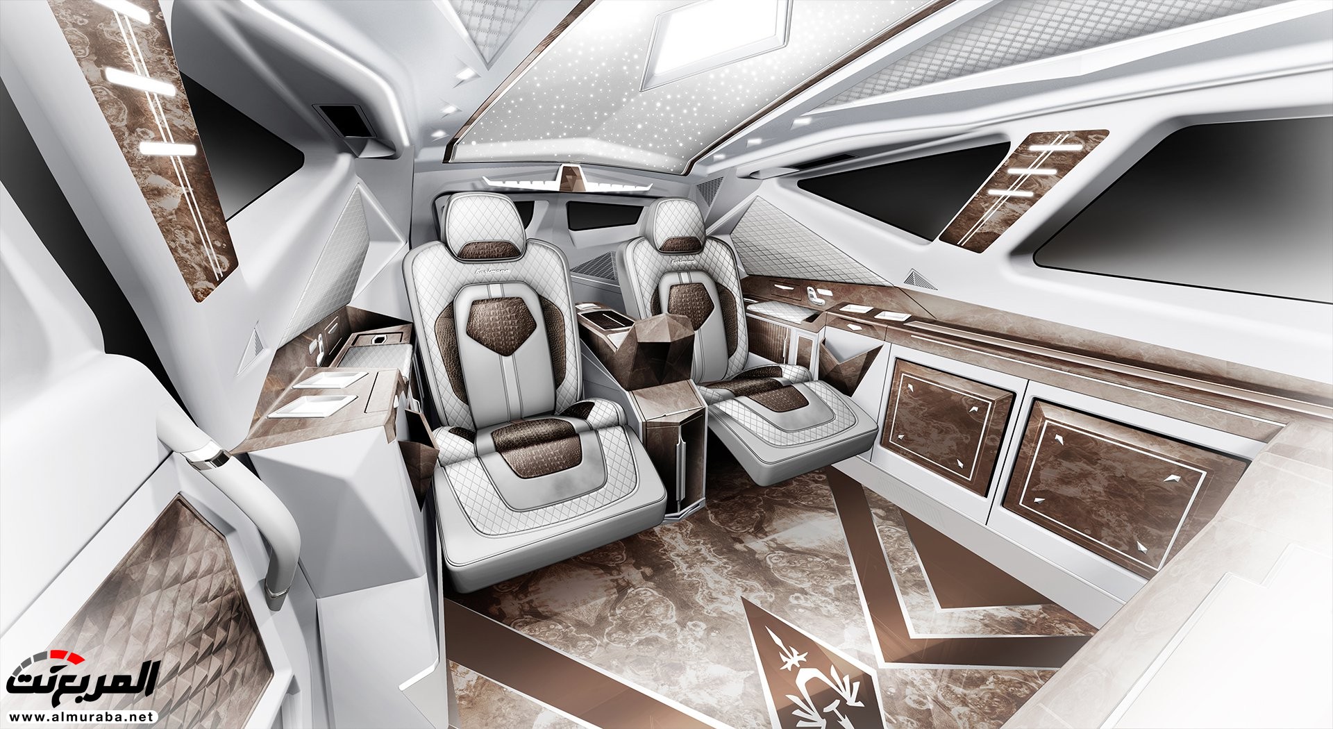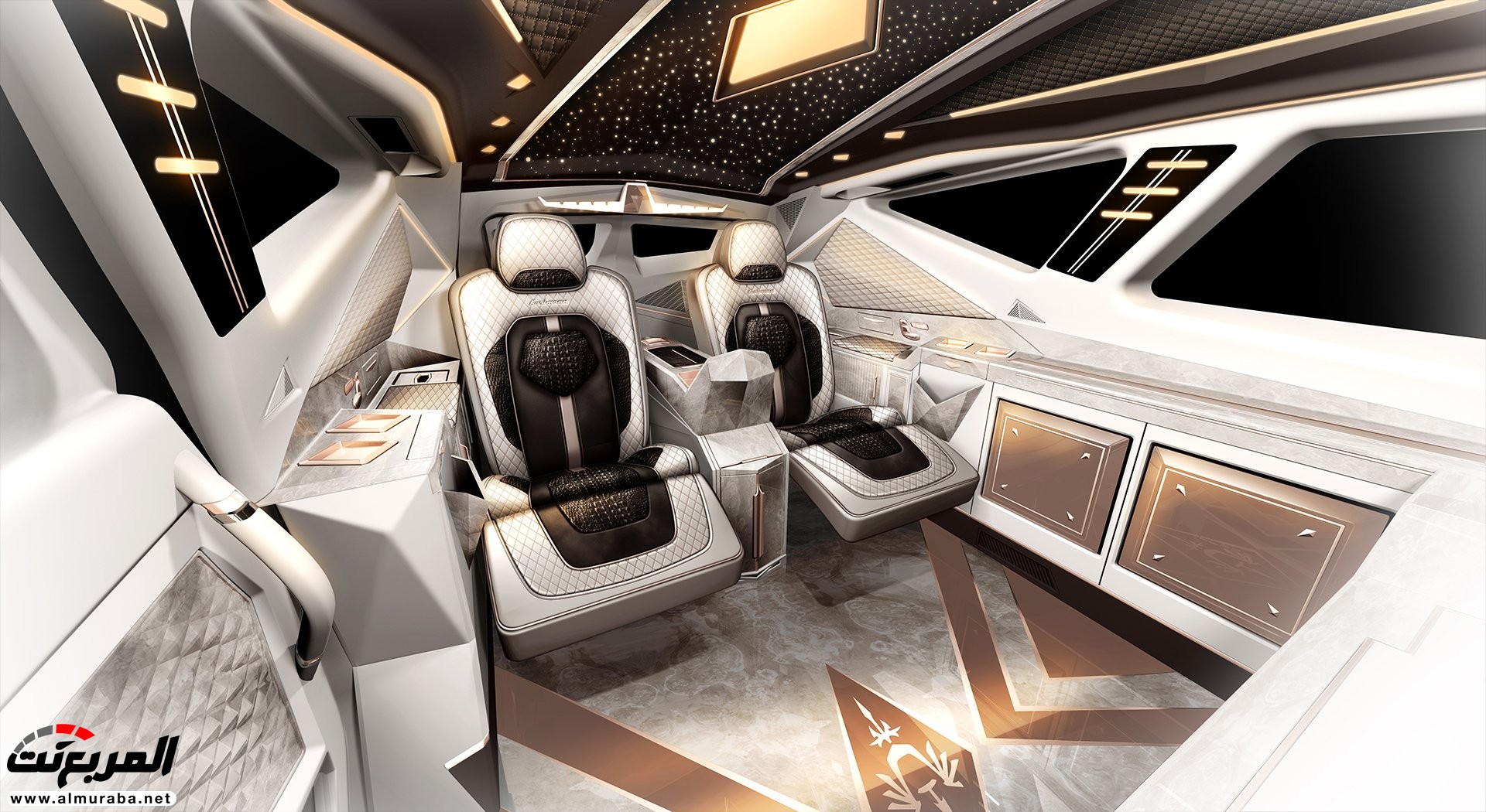 على ناحية المقصورة، فإنه لاسترخاءك وراحتك ستجد مزايا مثل الإضاءة المحيطية، تلفزيون بشاشة عريضة قابلة للسحب، تابلت مدمج، ثلاجة وحتى آلة صنع قهوة.