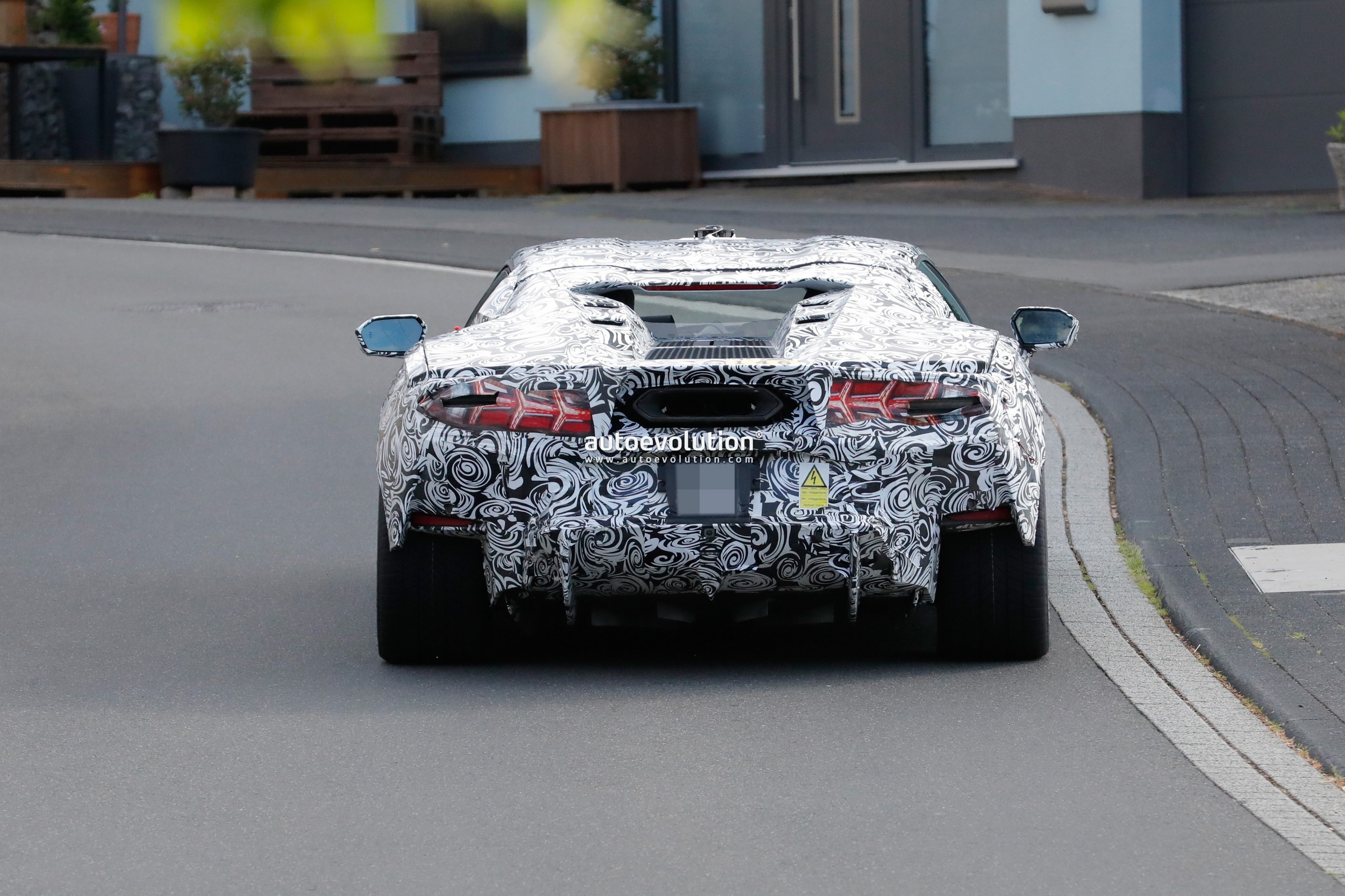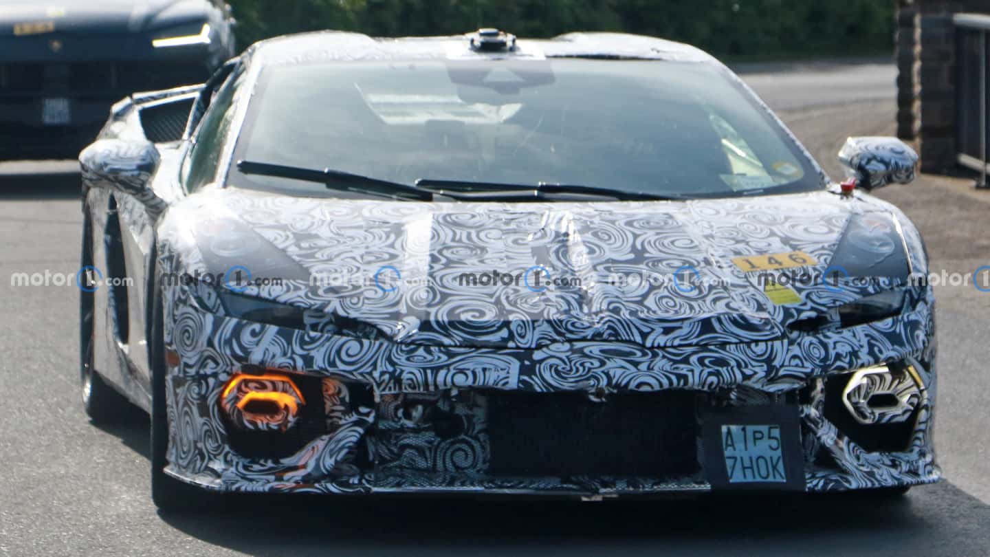 ظهرت سيارة لامبورجيني الخارقة الجديدة بمصابيح أمامية نحيفة للغاية مع مصابيح LED سداسية الأضلاع بالمصدات الأمامي بتصميم غير مألوف من لامبورجيني، وبالانتقال إلى المقطع الخلفي حيث يظهر لنا منفذ العادم الضخم الذي يتوسط المصابيح الخلفية الجديدة كلياً مع مشتت هواء ضخم بخطوط تصميمية حادة لم يتمكن الغطاء التمويهي من إخفائها.