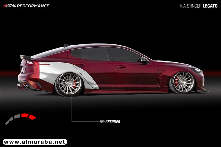 حصلت ستينجر خلال هذه الفترة على العديد من التعديلات، وقد أتى أحدثها من شركة Ark Performance الأمريكية التي زودت السيدان الرياضية بحزمة هيكل عريض تحمل اسم ليجاتو، حيث تضمنت إضافة تمديدات للرفارف الأربعة، فواصل، مشتت، جناح خلفي، مع غطاء محرك مختلف بسعر إجمالي يبلغ 4,350$ (16,315 ريال) للحزمة بالكامل، رغم إمكانية الحصول على تمديدات الرفارف الأمامية والخلفية بشكل منفصل مقابل 998$ (3,745 ريال) و 1,360$ (5,100 ريال)، بينما يبلغ سعر غطاء المحرك المصنوع بالألياف الزجاجية والجناح 929$ (3,485 ريال) و529$ (1,985 ريال).