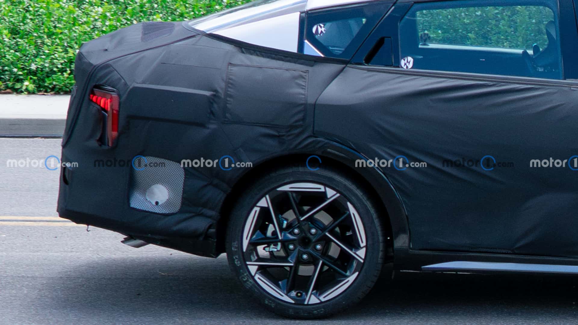 التصميم الخلفي مختلف بشكل جذري كذلك، مع مصابيح خلفية مستطيلة ورأسية، ومتصلة بخط ضوئي أحمر وضيق، كما نرى أنابيب العادم بالأسفل، ما يدل على استخدام محركات الاحتراق الداخلي في السيارة.