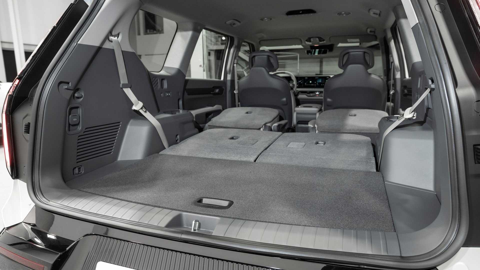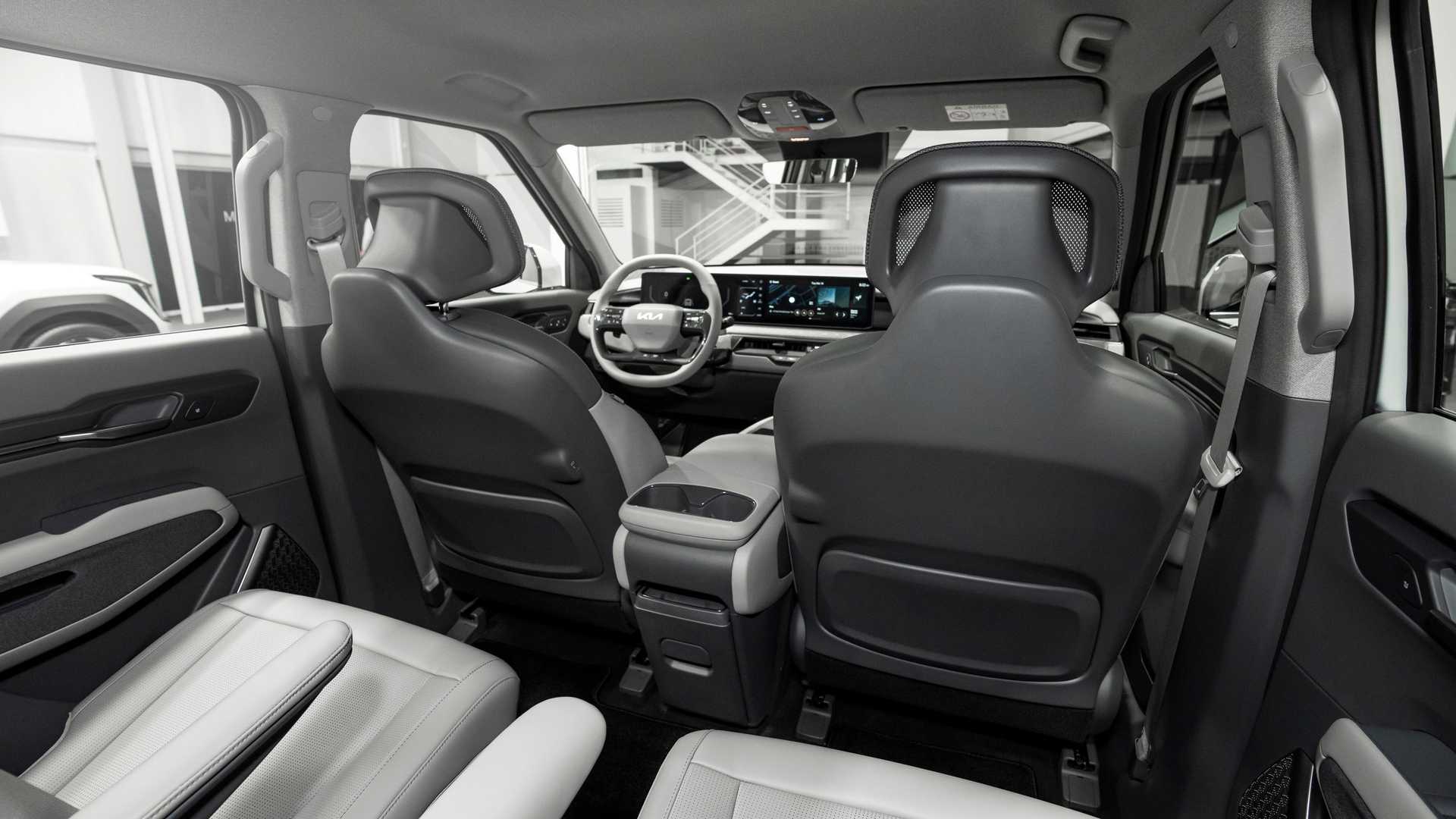 وجدير بالذكر أن كيا EV9 هي سيارة بنفس حجم تيلورايد ولكن تحظى بقاعدة عجلات أطول بـ 8 إنش، ما يؤدي بتوفير مساحة أكثر رحابة في المقصورة، مع إمكانية الاختيار بين 6 أو 7 مقاعد، وهي مقاعد قابلة للاستدارة بالكامل بزاوية 180 درجة.