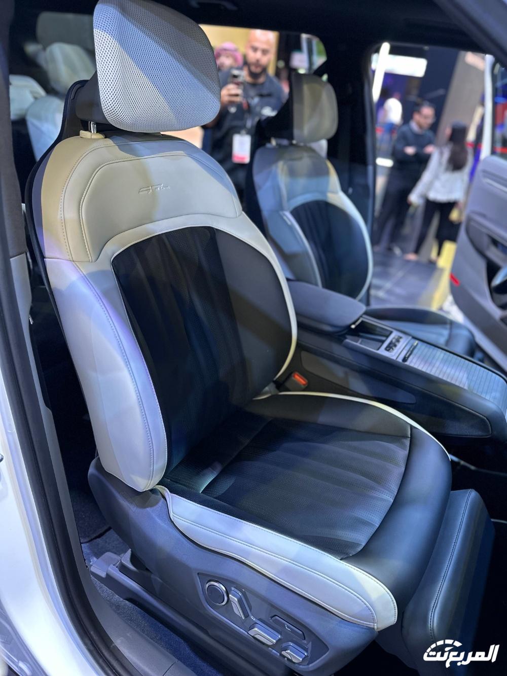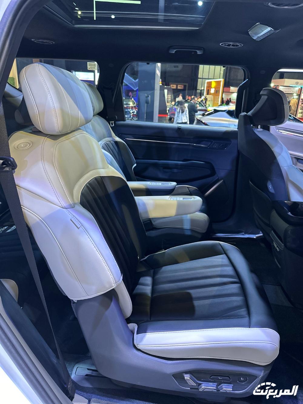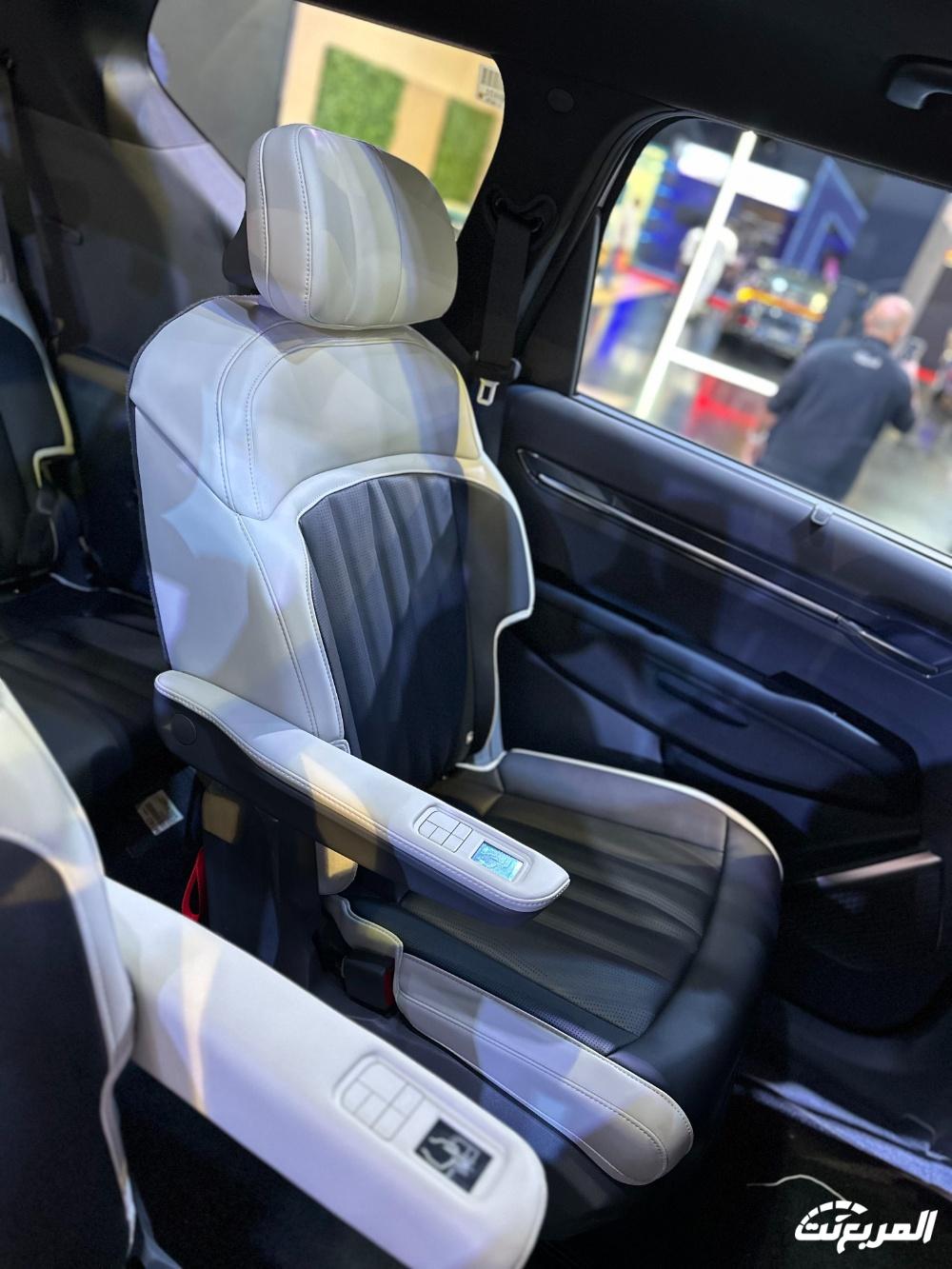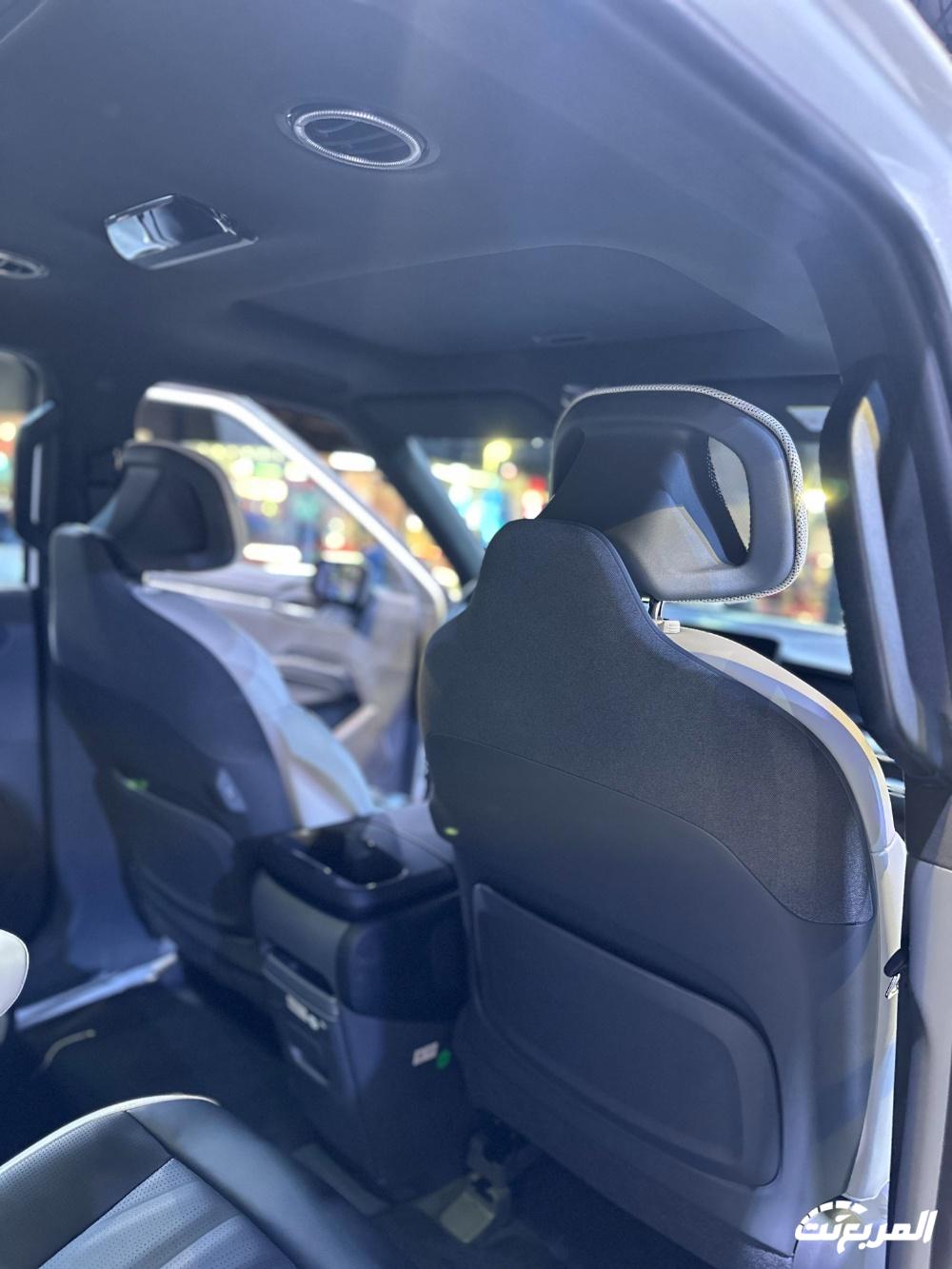 كما نرى أن السيارة قد حصلت على مقصورة تتسم بالفخامة، فضلًا عن المساحات الرحبة والتقنيات المتقدمة والوسائل التكنولوجية الحديثة التي تساعد في توفير تجربة قيادة ممتع ومريحة، حيث نرى ثلاث صفوف و7 مقاعد كهربائية يُمكن تعديلها في 8 وضعيات، تدعم خواص التدفئة والتبريد فضلًا عن التدليك مع مساند الأرجل التي تعمل كهربائيًا، وتتيح مقاعد الصف الثاني سهولة الوصول إلى الصف الثالث، ومنافذ USB-C متعددة داخل المقصورة، ومكيف هواء ثلاثي المناطق ويُمكن التحكم في درجة الحرارة في الأمام والخلف.