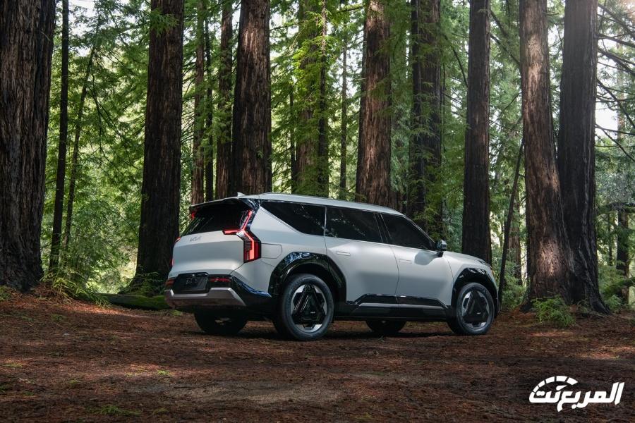 وعن التصميم الخلفي فهي تتمتع أيضًا بمصابيح خلفية LED ذات تصميم فريد تُلفت الإنتباه إلى زوايا جسم السيارة EV9، مع جناح خلفي يعطي انسيابية كبيرة للسيارة، مع وقضبان سقف مرتفعة، وفتحة سقف.