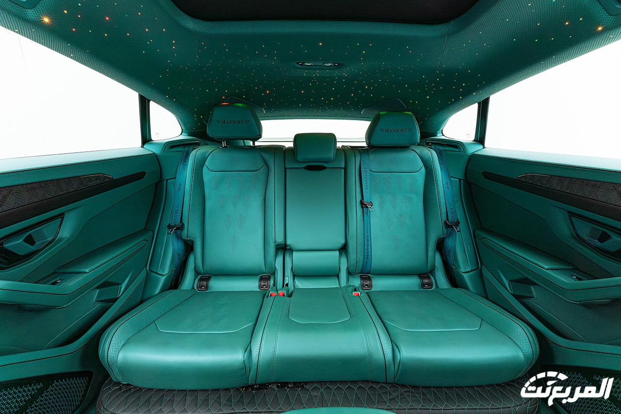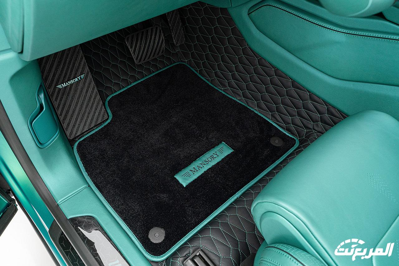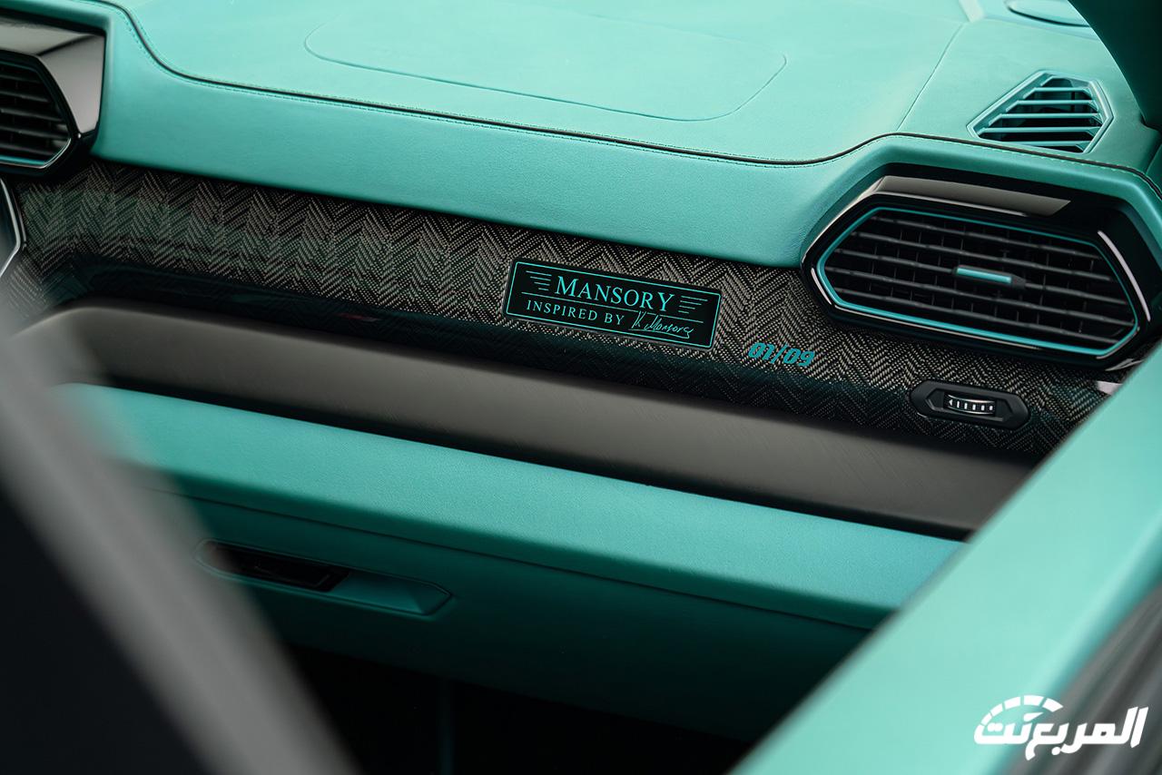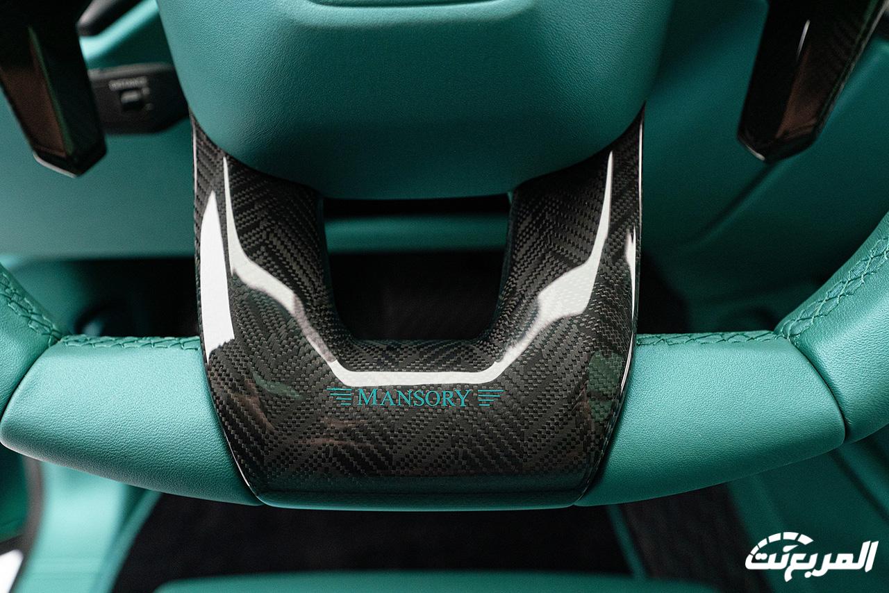 تستمر القطع المصنعة خصيصاً من ألياف الكاربون بالداخلية والتي تسيطر على العديد من القطع بجانب الجلد الفاخر الجديد الذي يغطي كافة القطع الداخلية تقريباً، مع استبدال شعارات لامبورجيني بالداخلية بشعارات مانسوري كما فعلت العلامة الألمانية بالمظهر الخارجي أيضاً.