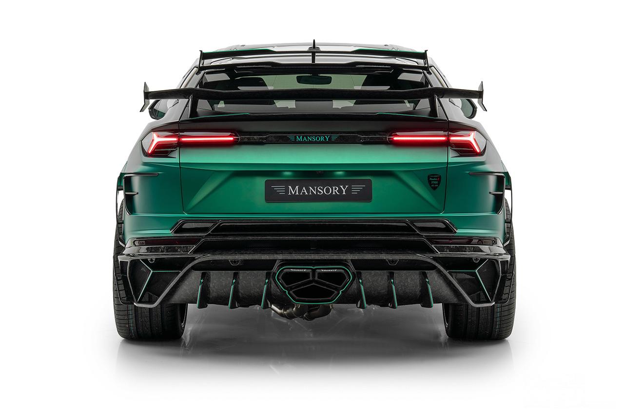 حصلت لامبورجيني اوروس أيضاً على سقف مصنع من ألياف الكاربون مع الحفاظ على فتحة السقف بدون إغلاقها، بالإضافة إلى عتبات جانبية رياضية جديدة، وعجلات رياضية بقياس 24 إنش، وصولاً للمقطع الخلفي حيث تظهر لنا الأجنحة الخلفية الكبيرة مع مشتت الهواء الضخم وتم تصنيع هذه القطع أيضاً من ألياف الكاربون.