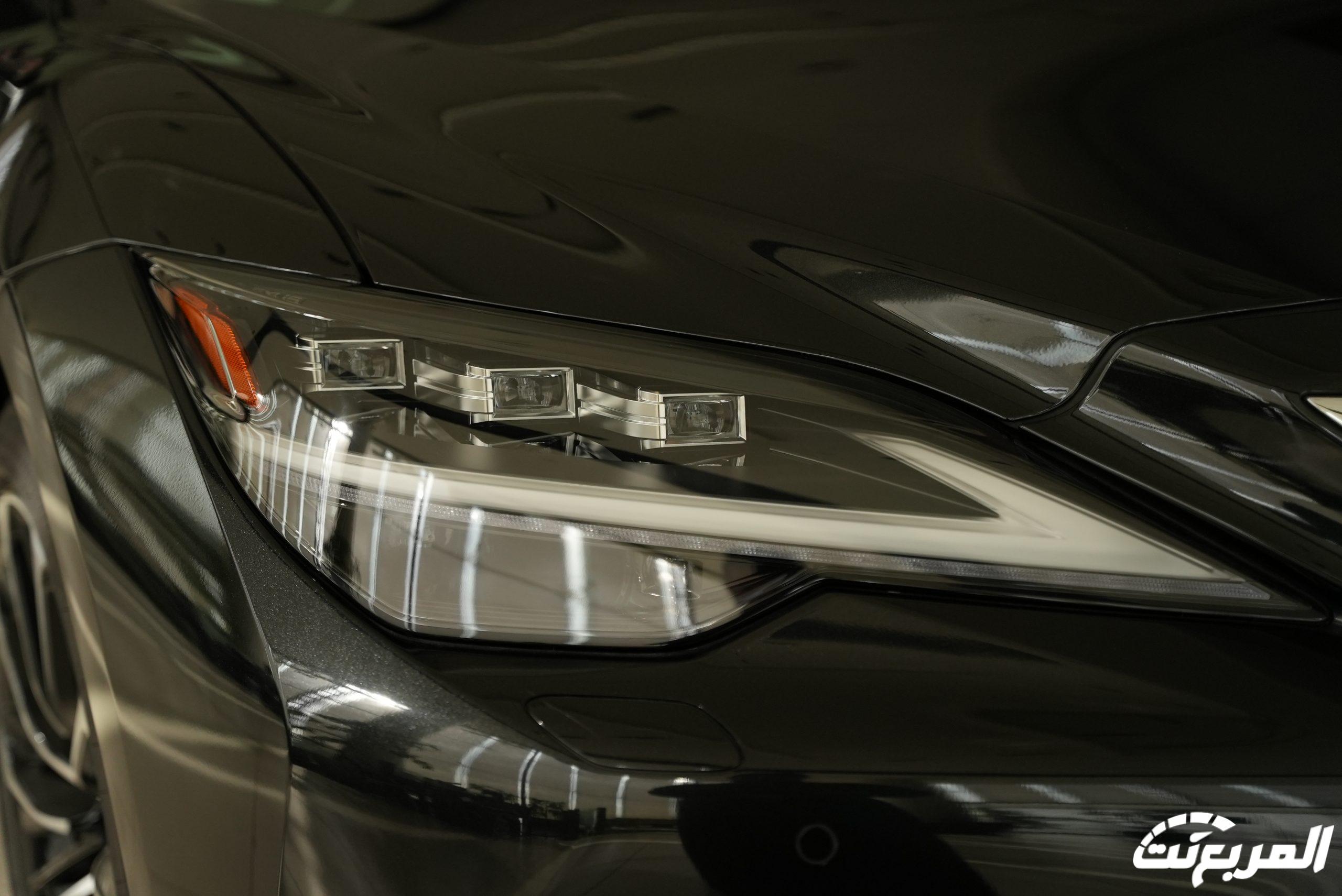 كذلك تميزت السيدان اليابانية بتلك المصابيح الأمامية الحادة التي عززت النظرة الهجومية للسيارة، إذ اندمجت بانسيابية مع الشبك الذي توسطه شعار لكزس الشهير.