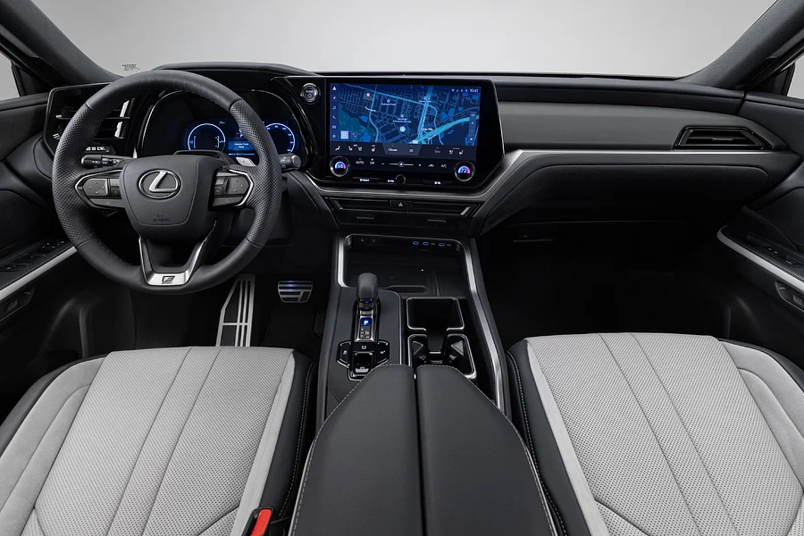 وتحظى لكزس TX الجديدة بداخلية فاخرة بمواصفات وتقنيات متطورة تشمل شاشة معلومات ترفيهية 12.3 إنش وشاشة عرض رأسية، مع تطبيقات أندرويد أوتو وآبل كاربلاي اللاسلكية للتكامل مع الجوال في جميع الفئات، وتتوفر السيارة بنظام سمعي Mark Levinson الفاخر بـ 21 مكبر صوت.