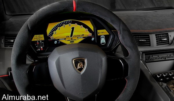 داخل مقصورة أفينتادور SV أصبح كل شيء أكثر رياضية وتفردًا عن السابق، فهي السيارة الاولى من لمبورجيني التي تقدم خامة جديدة تسمى “جلد الكاربون”، وهي خامة تصنع من مزيج الكاربون فايبر والبلاستيك، لتوفر مستوى مرتفع من الصلابة والجودة، مع الوزن الخفيف والمظهر الرياضي، مع ملمس ناعم محبب لمستخدمي السيارات الرياضية.