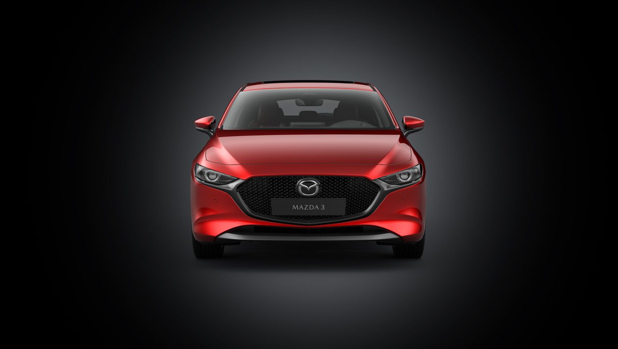 وتأتي الواجهة الأمامية تحمل اللمسات الراقية التي نراها في طرازات مازدا والتي تمنحها مظهرها الأنيق والمحبب لدى العملاء، فتشتمل على شبك أمامي كبير باللون الأسود يزينه علامة مازدا في المنتصف، ويحيط به من الأسفل إطار كرومي باللون الأسود يعزز من عصرية المظهر الخارجي ويصل الشبك الأمامي بالمصابيح الأمامية.