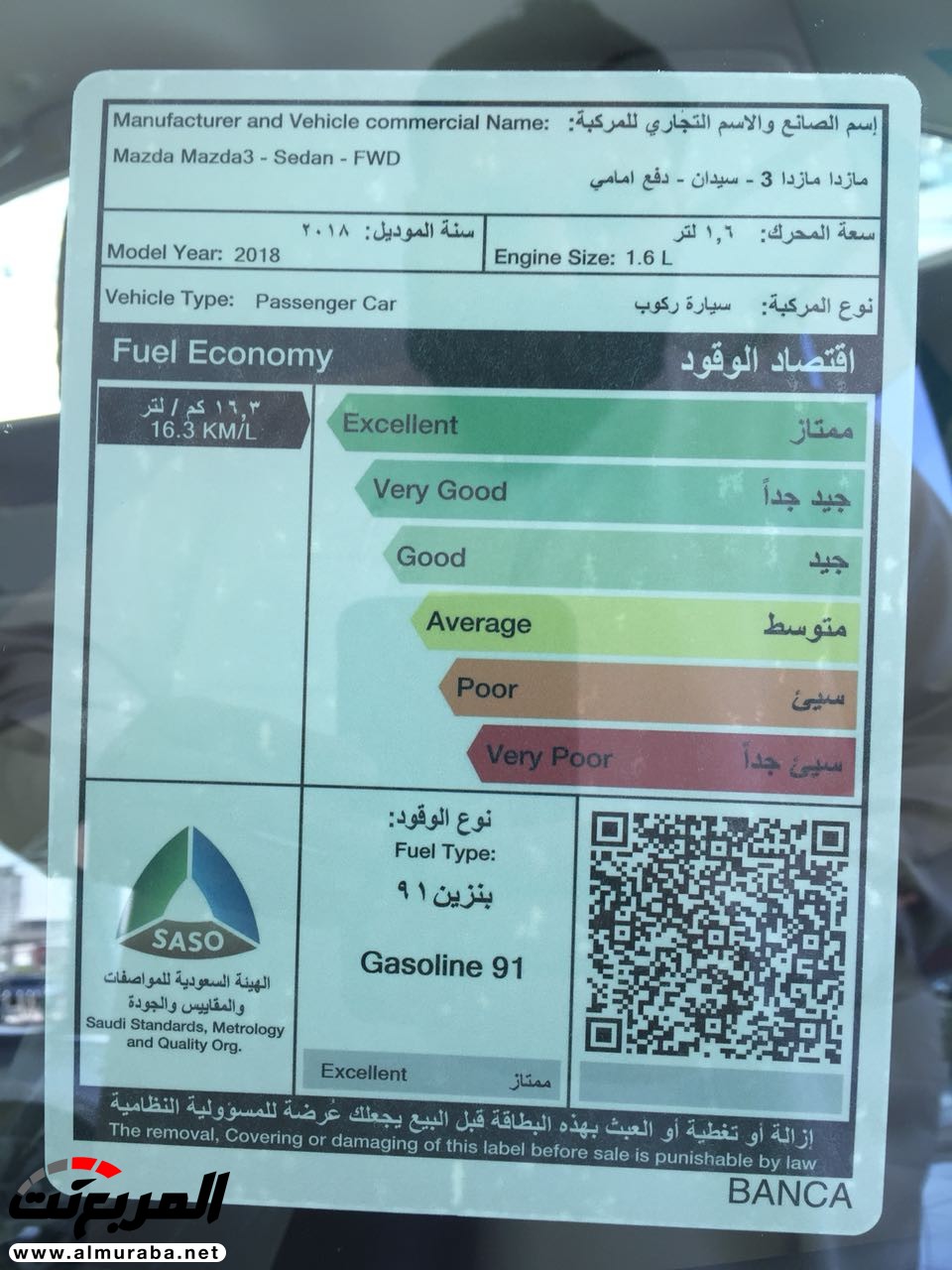 1- مازدا 3 2018 S ( الفئة العادية ) وسعرها 55,798 ريال سعودي بنفس المحرك 4 سلندر بسعة 1.6 لتر وقوة  مقدارها 105 حصان وناقل حركة ب 6 سرعات أوتماتيكي وإستهلاك للوقود 16.6 كيلوا لكل لتر وقاعده عجلات حديدية مقاس 16 أنش مع كشافات سفلية