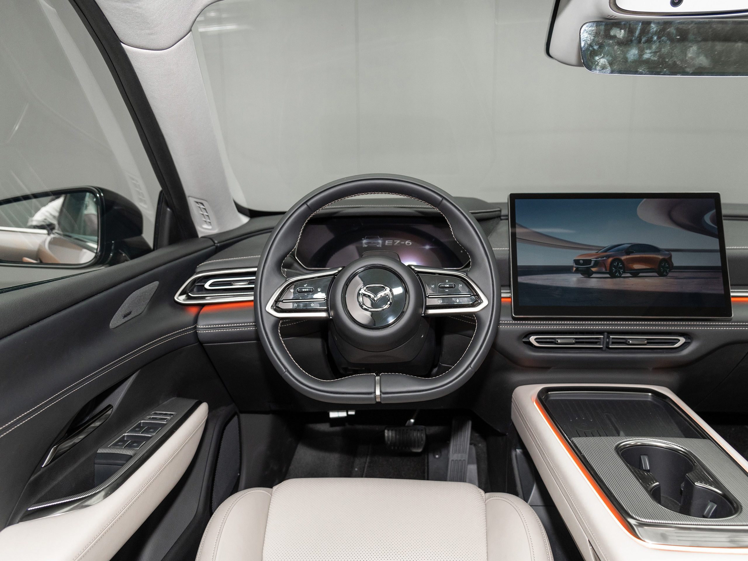 حصلت مازدا EZ-6 الجديدة على داخلية مستقبلية بطابع رياضي مع العديد من التجهيزات الفاخرة ونظام صوتي محيطي عالي الأداء من شركة سوني، مع عجلة قيادة بتصميم رياضي ولوحة قيادة بدون أزرار على الإطلاق، حيث تتواجد الأزرار الوحيدة بالسيارة على عجلة القيادة وبمقابض لأبواب للتحكم بالنوافذ الكهربائية فقط.