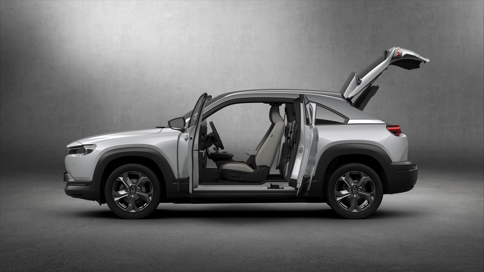 بالنسبة لتصميم MX-30 فهو مثير للاهتمام مع أبواب خلفية “انتحارية”، والتي تُفتح للوراء بدل الأمام بينما الشكل الخارجي بشكل عام مستوحى من سيارات كروس اوفر أخرى لمازدا مثل CX-30.