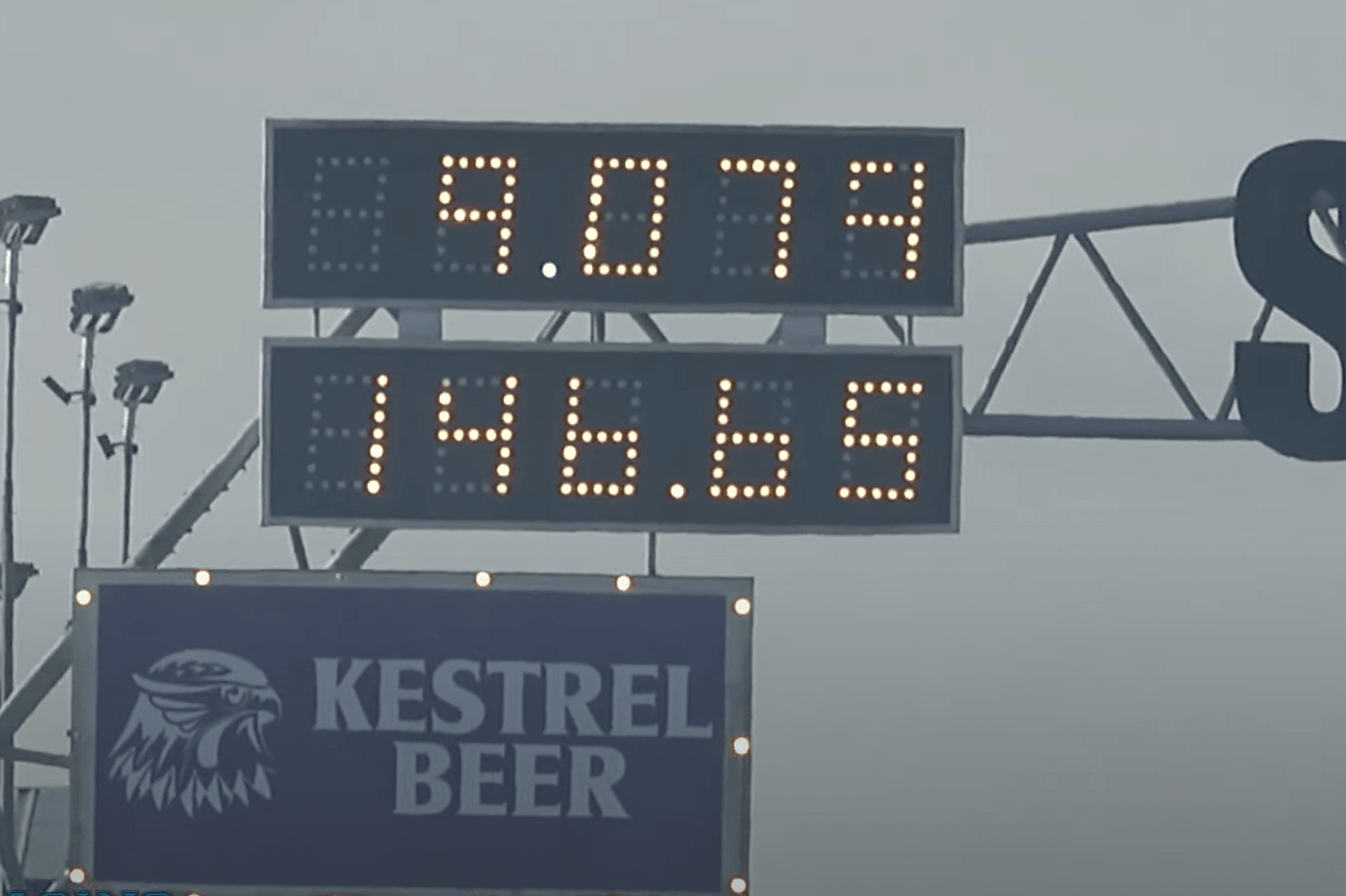 سافر باي من إسكتلندا إلى بريطانيا للمشاركة في سباق تسارع شهير لكسر الزمن القياسي السابق له والذي بلغ 9.4 ثانية، وكما ذكرنا كان يهدف باي إلى الوصول إلى 8.99 ثانية، ولكن اقترب للغاية من الهدف بدون تحقيقه حيث لم يتمكن من تحقيق زمن أفضل من 9.0 ثانية بسبب بعض المشكلات التي واجهته في السيارة.