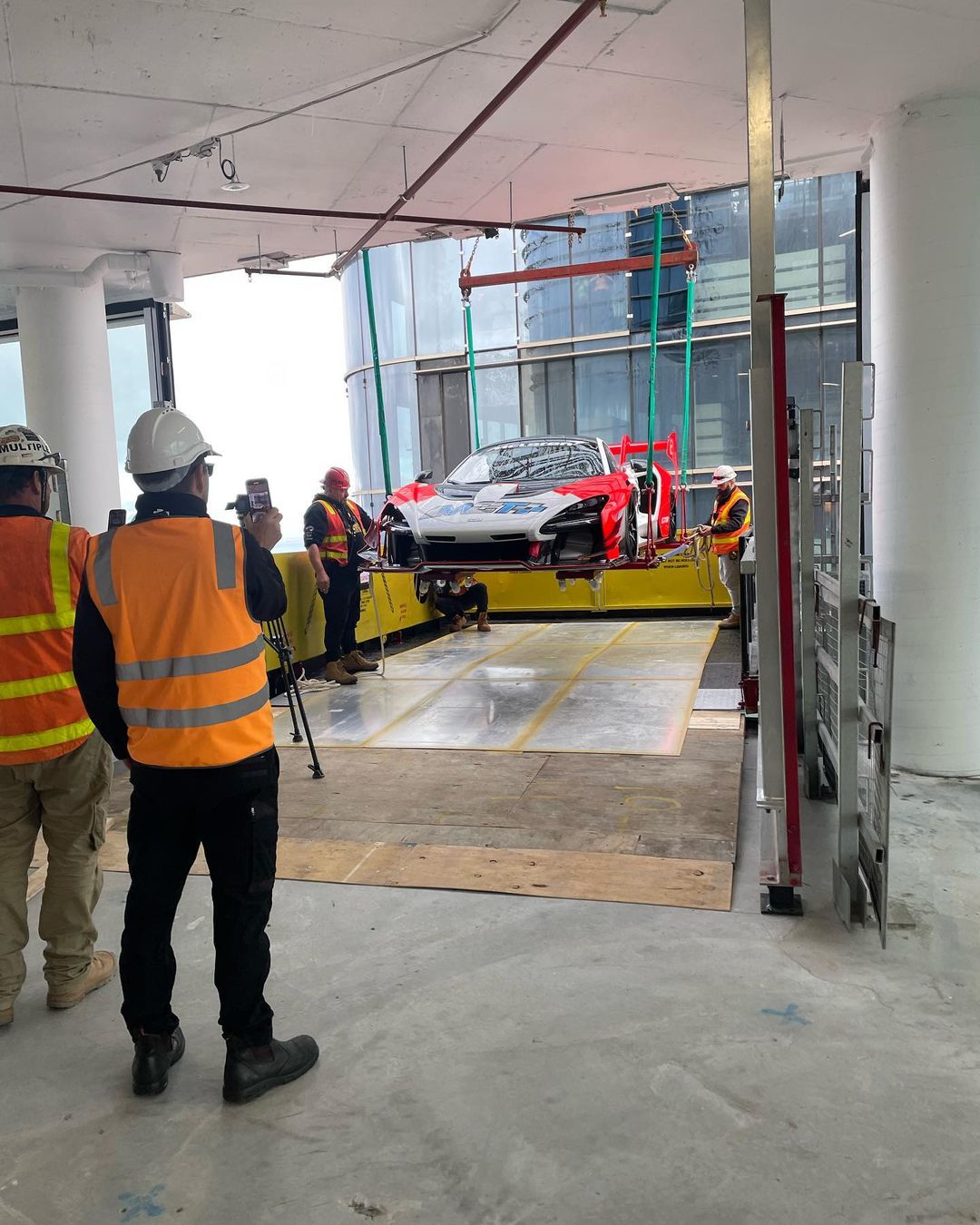 تم رفع السيارة إلى الطابق الـ 57 من قبل طاقم مكون من 8 أفراد لنقل السيارة إلى أحد الطوابق المرتفعة للغاية في برج بمدينة ملبورن في أستراليا، حيث تم تحميل السيارة بعناية على الرافعة لتجد نفسها في منزلها الجديد والتي سوف تظل متواجدة به للعديد من الأعوام التالية لتزيين منزل المليونير الأسترالي.