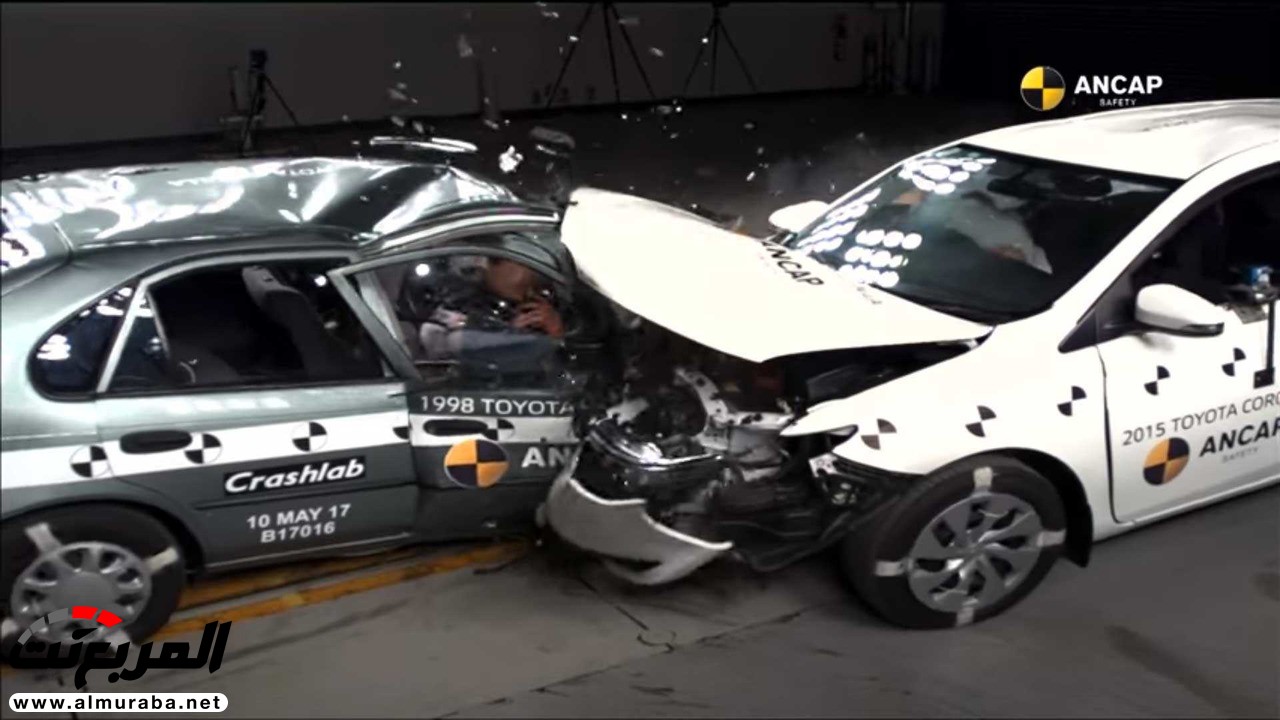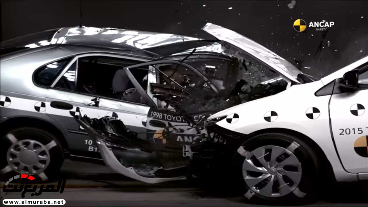 حيث قام برنامج تقييم السيارات الاسترالي بجلب تويوتا كورولا 2015 وأخرى 1998 ووضعوا كليهما في تصادم أمامي على سرعة 40 ميل (65 كيلومتر) في الساعة وكانت النتيجة صادمة.