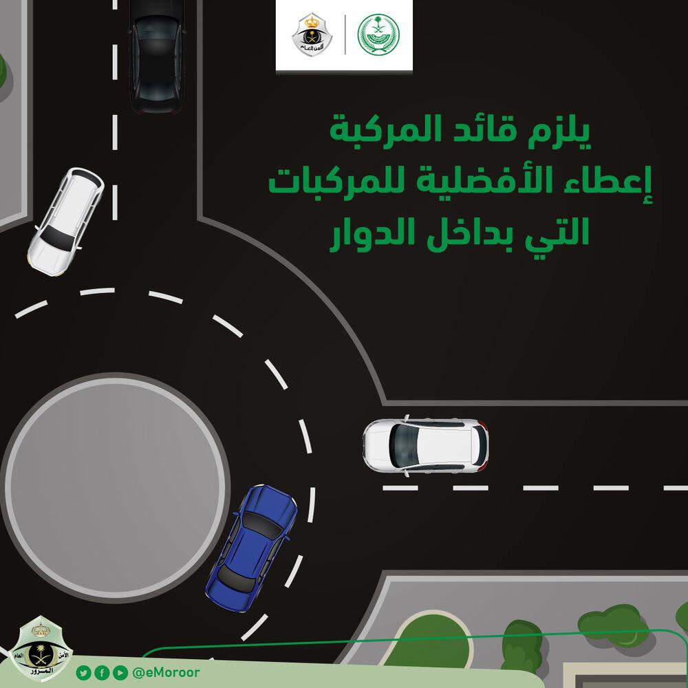 المربع نت – أكدت الإدارة العامة للمرور السعودي عبر الحساب الرسمي على موقع التواصل الاجتماعي “تويتر”، على ضرورة إعطاء قائد السيارة الأفضلية للسيارات التي بداخل الدوار.