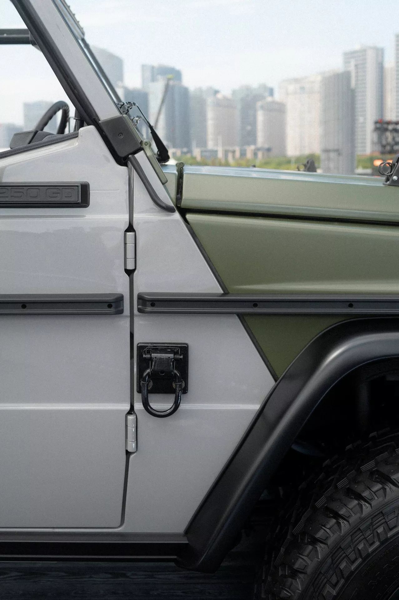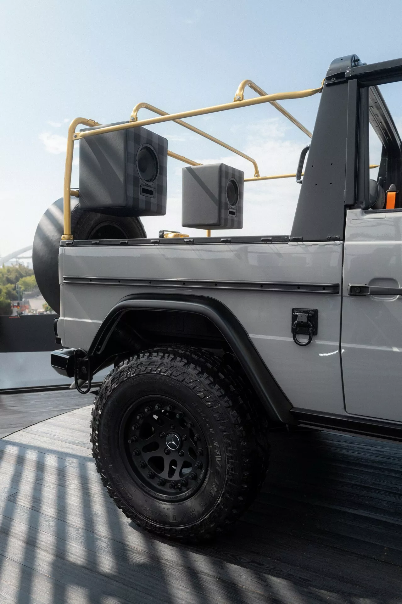 الإصدار الفني الجديد لجي كلاس مبني على نسخة كشف من التسعينات، ويتميز بسقفه القماشي المستوحى من المعاطف المبطنة الفاخرة التي يمكن شراؤها من Moncler، مع طلاء خارجي داكن يدمج بين اللونين الرمادي والأخضر الزيتوني، بالإضافة إلى لمسات سوداء وذهبية في مختلف أنحاء الخارجية، وجنوط سوداء من الفولاذ، وأقمشة كلاسيكية للمقاعد.