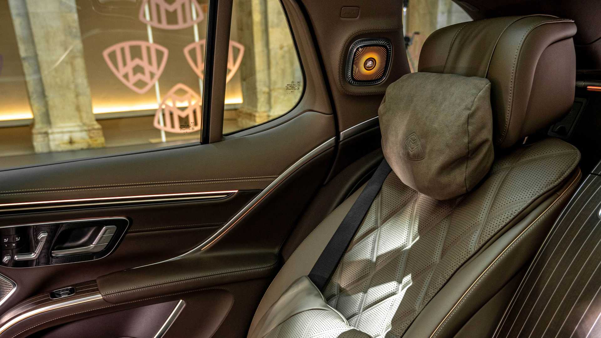 وتتميز نسخة مايباخ بشكل خاص عن الموديل القياسي في المقصورة، مع تخلي السيارة هنا عن الصف الثالث من المقاعد لتوفير مساحة أكثر رحابة بكثير لمقاعد الصف الثاني، مع توافر خدمة ماساج الساقين وتدفئة وتهوية الأكتاف وباقي أجزاء الجسم، مع كونسول أوسط خلفي يمكن وصله بالكونسول الأوسط الأمامي على هيئة جسر طافئ أنيق.