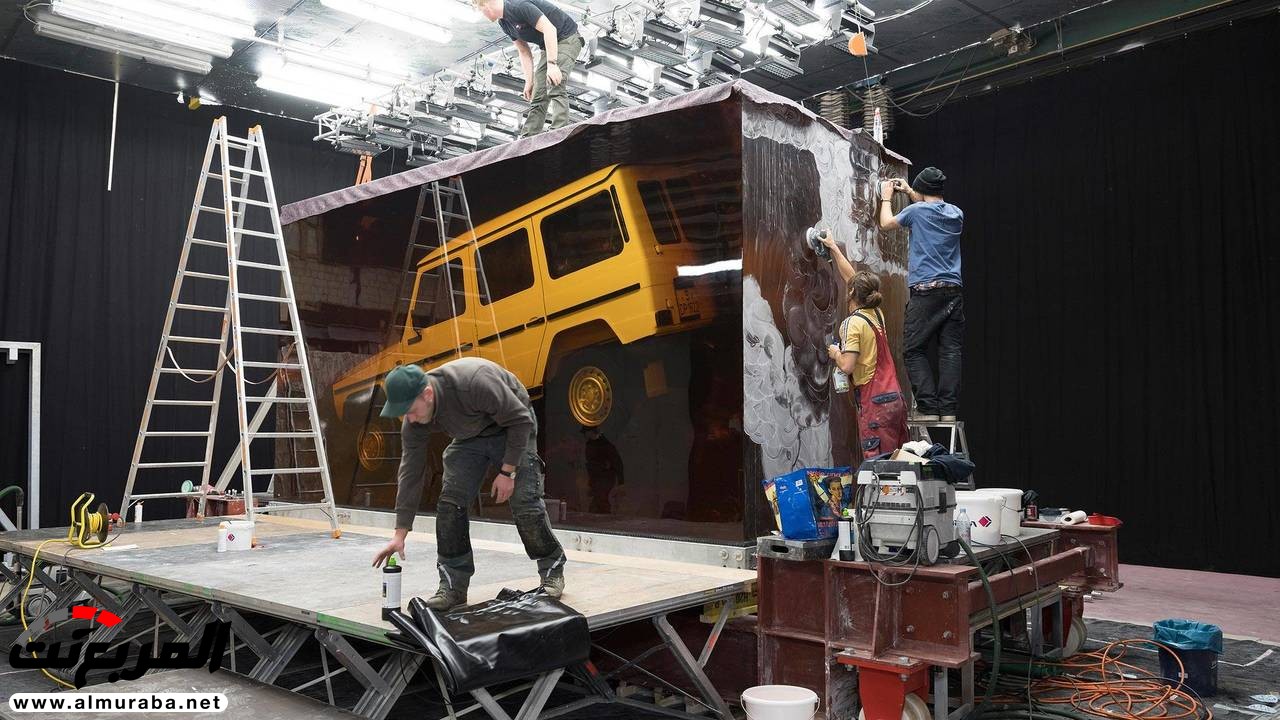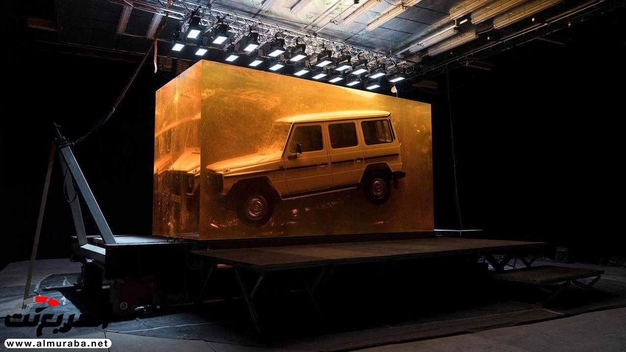 ويزن المكعب 44.4 طن بطول 5.4 متر وعرض 2.6 متر وارتفاع 3.1 متر، حيث احتاج فريق من المتخصصين لتسعين يوما لصنعه.. وداخل هذا الصمغ توجد سيارة 280GE موديل 1979، وهي G-Class ذات محرك 2.8 لتر بست سلندرات مستقيمة بقوة 154 حصان وعزم دوران 167 رطل-قدم، وإن كانت السيارة لن تستخدم هذا المحرك قريبا بالطبع.